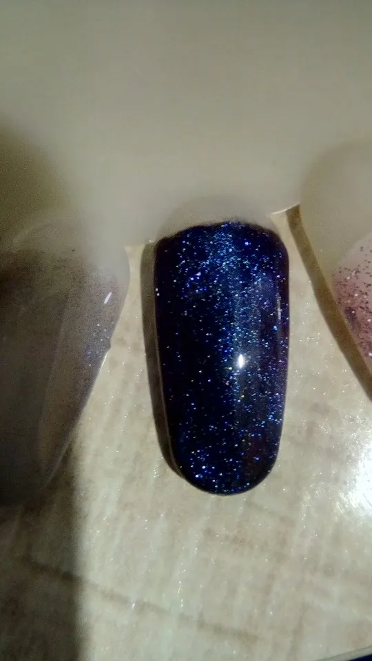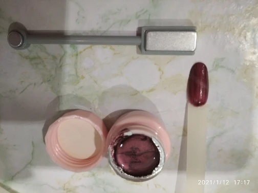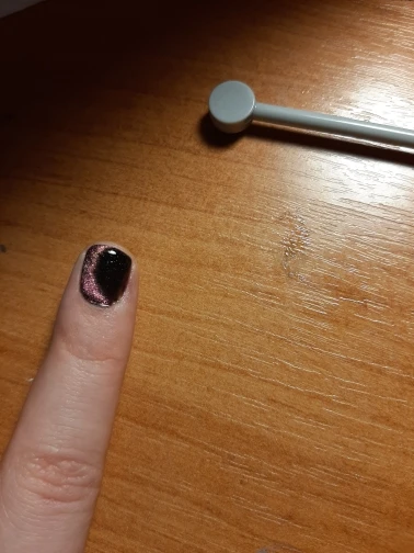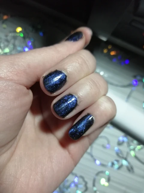 Лак отличный. Заказывала 11.11, чуть меньше месяца шел до Рязани. В меру густой, магнитные блёстки подвижные и мелкие, подобный результат достигается быстро. В общем, 10 из 10