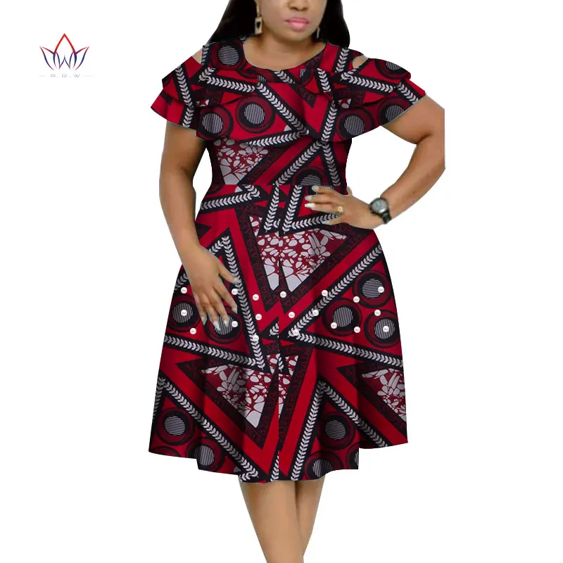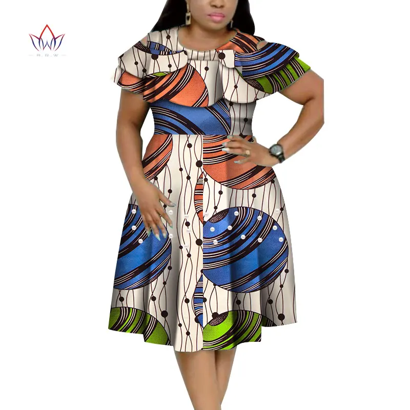 Новый Базен в африканском стиле с оборками на воротнике; Платья для женщин в африканском стиле Dashiki печати платья с жемчугом Свадебные платья для женщин в африканском стиле Одежда WY4401
