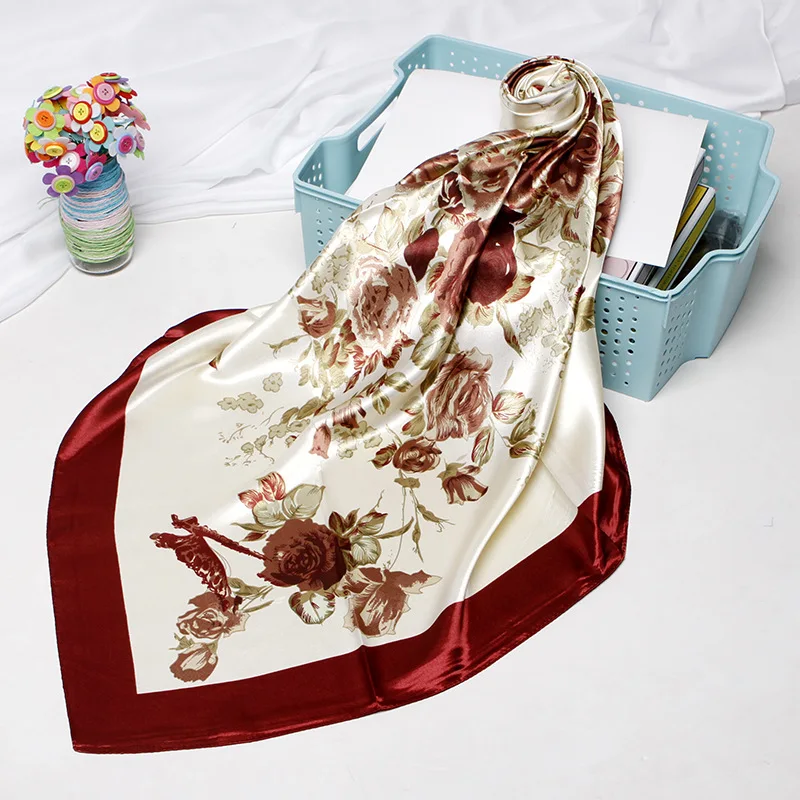 Модный платок, шарф для волос для женщин, шелковый шарф с зеленым и фиолетовым принтом, новый хиджаб, шарфы 90 см * 90 см, квадратные шали, шарфы для женщин 2022