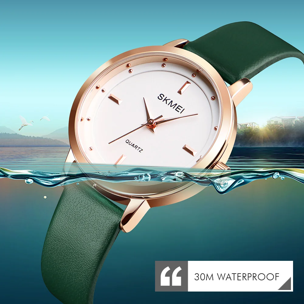 Часы женские SKMEI, кварцевые, с кожаным ремешком