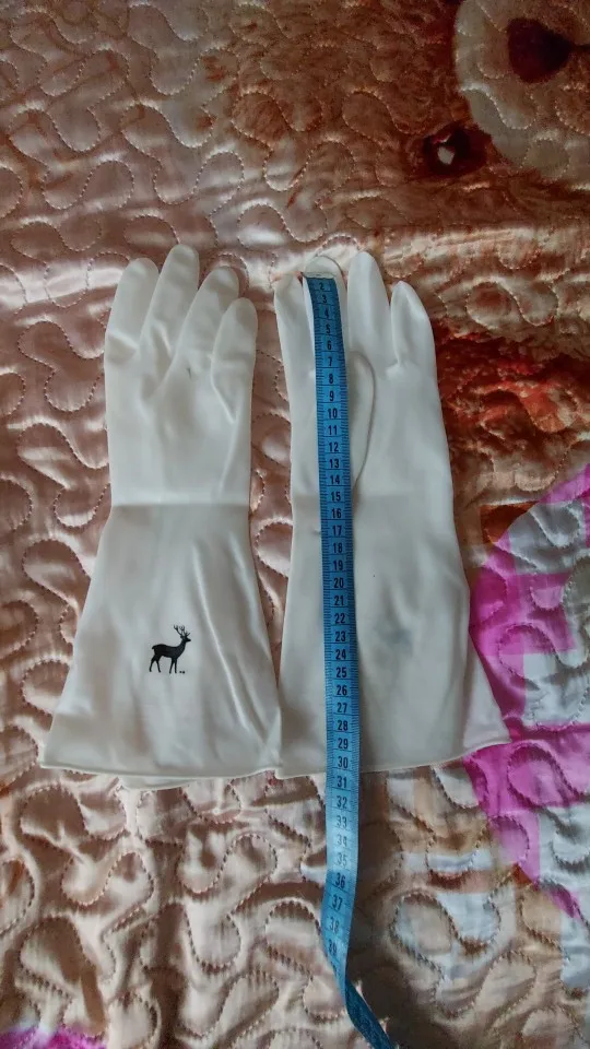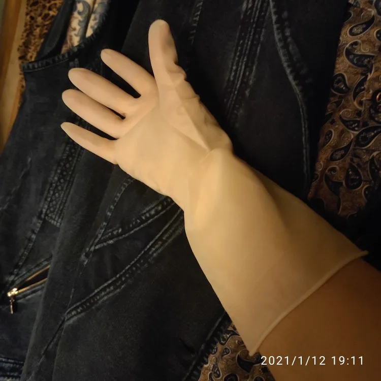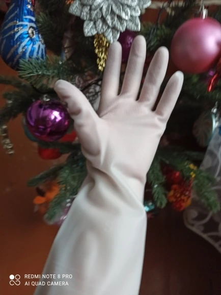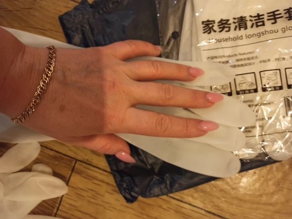 Перчатки на мои руки налезли, толще чем обычные длинные, которые обычно в магазине продаются. Сегодня в течение 90 минут мыла сантехнику вместе с химией, и за все это время перчатки не порвались и не стали пропускать воду. Надеюсь, что перчатки прослужат долго, тк обычно у меня перчатки рвутся на 2-3 мойку. Приехали перчатки примерно за месяц. С продавцом не общалась.