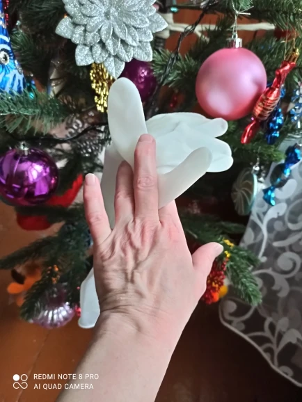 Перчатки пришли за три недели сборной посылкой (удобно). Покупала 11.11 размер S=1.47$, размер М=2,6$. На ширину ладони 8 см подошел именно размер М (описание на сайте верны), S будет маловат (если пальцы с длинными ногтями точно будет мало), но пользоваться можно. В хозяйстве еще не применяла. Продавец отправил быстро. Сначала защита покупателя была 70 дней, но когда заказ получили на почте, то защита покупателя была изменена продавцом на 30 дней, это как-то нехорошо.