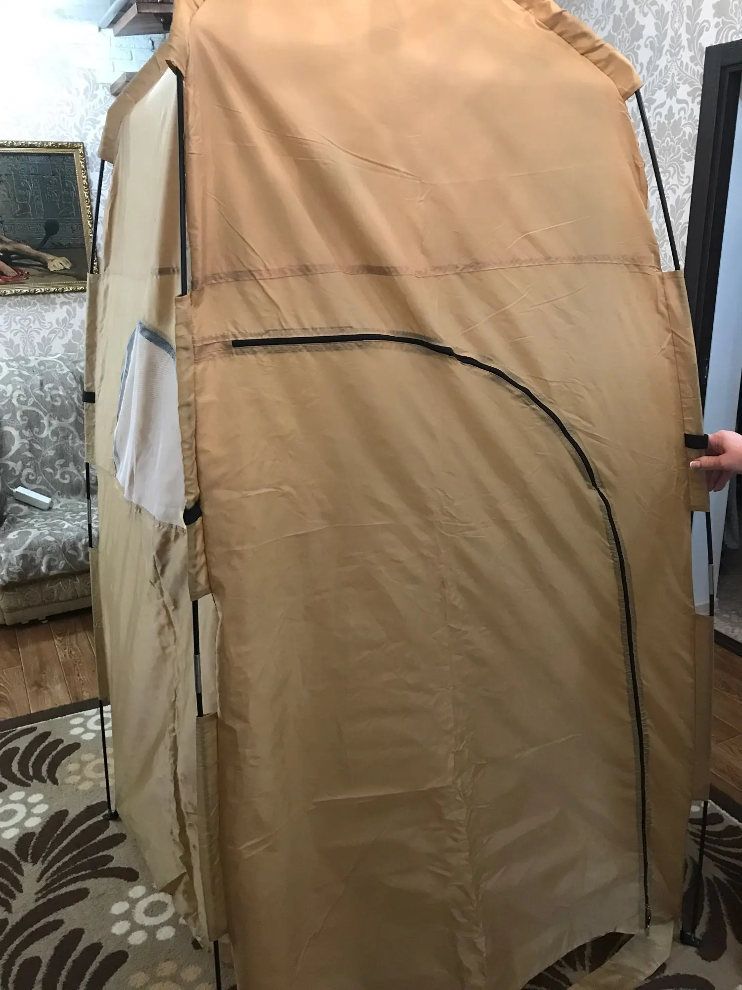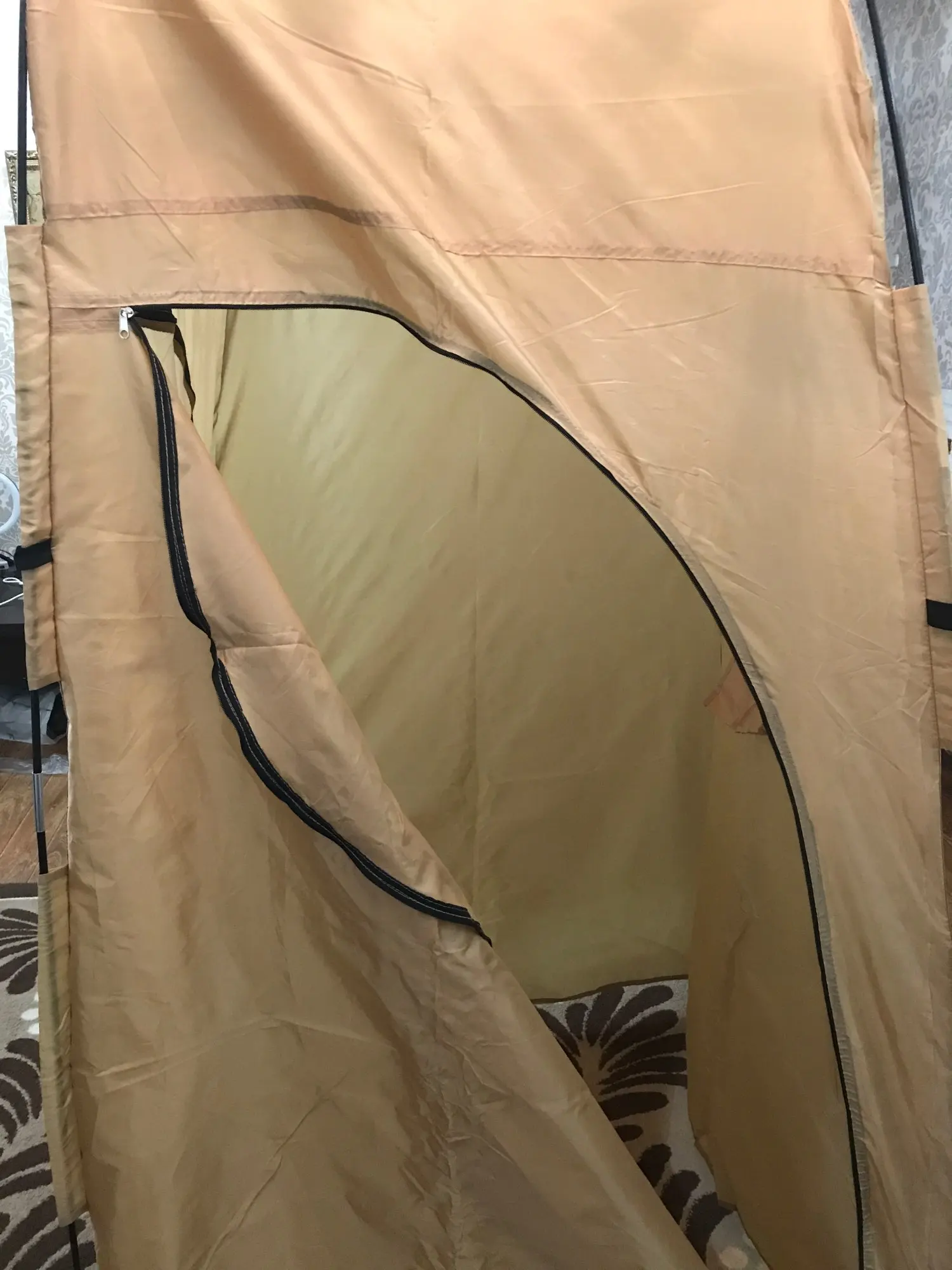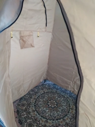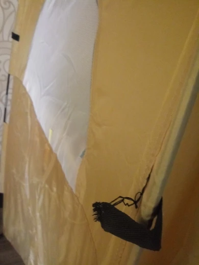 очень неудобно вставлять прутья, к сожалению не доглядел сразу, заказал ещё другую палатку с крючками на прутья, эта без дела теперь валяется. В остальном все нормально.