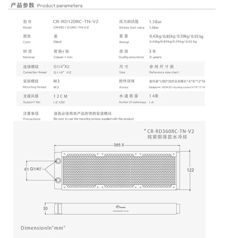 Bykski CR-RD240RC-TN-V2 PC охлаждение G14 медный 240 мм радиатор во...