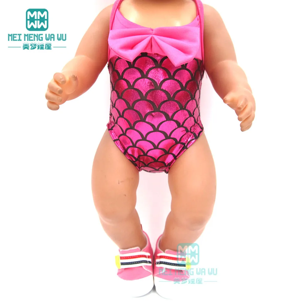 Одежда для кукол, размер 43 см, кукла для новорожденных и американская кукла, Цельный купальник с синей русалочкой