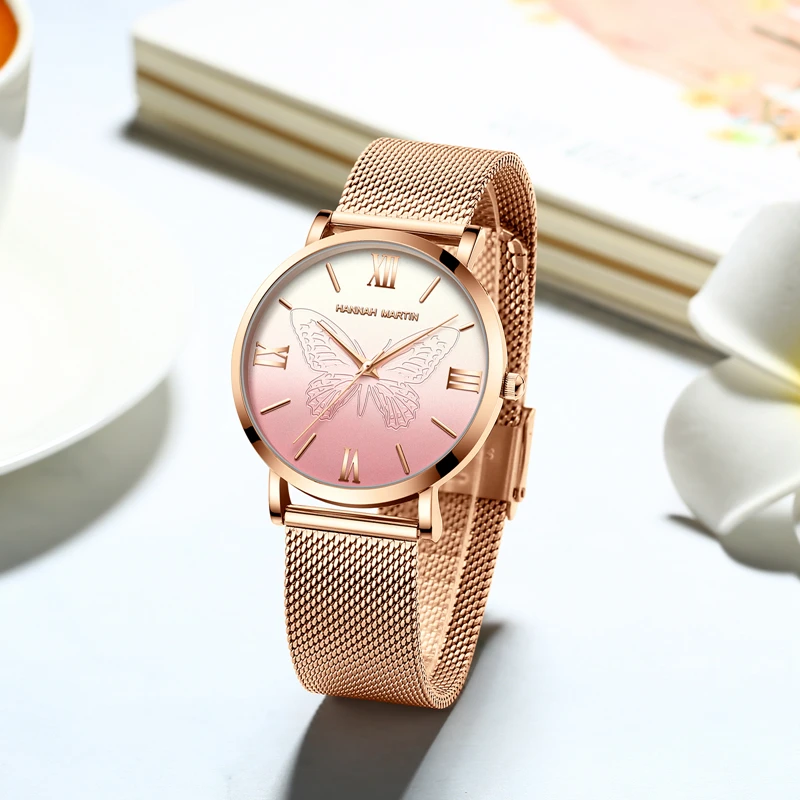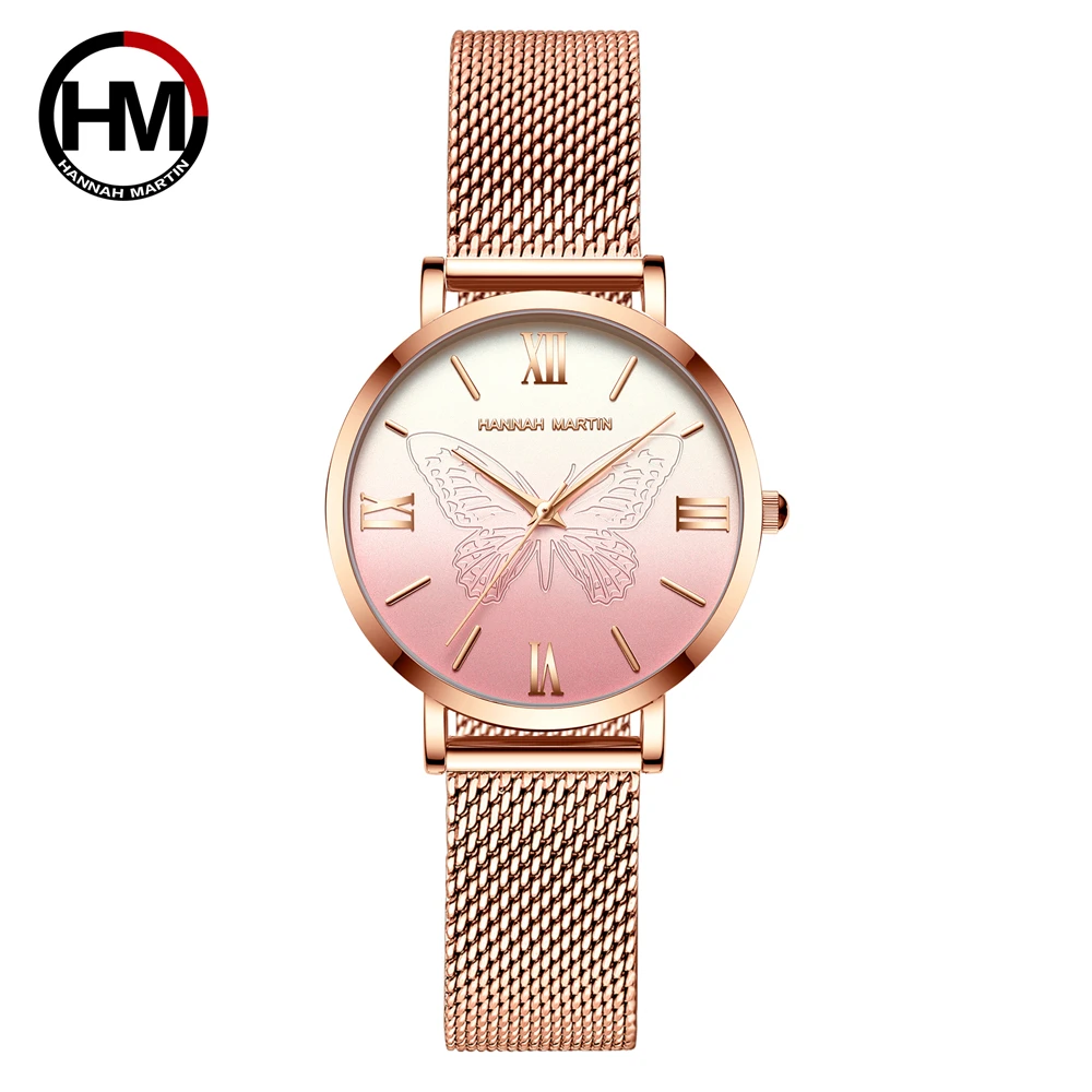 Часы наручные женские кварцевые с японским механизмом, брендовые Роскошные водонепроницаемые с 3D бабочкой из нержавеющей стали