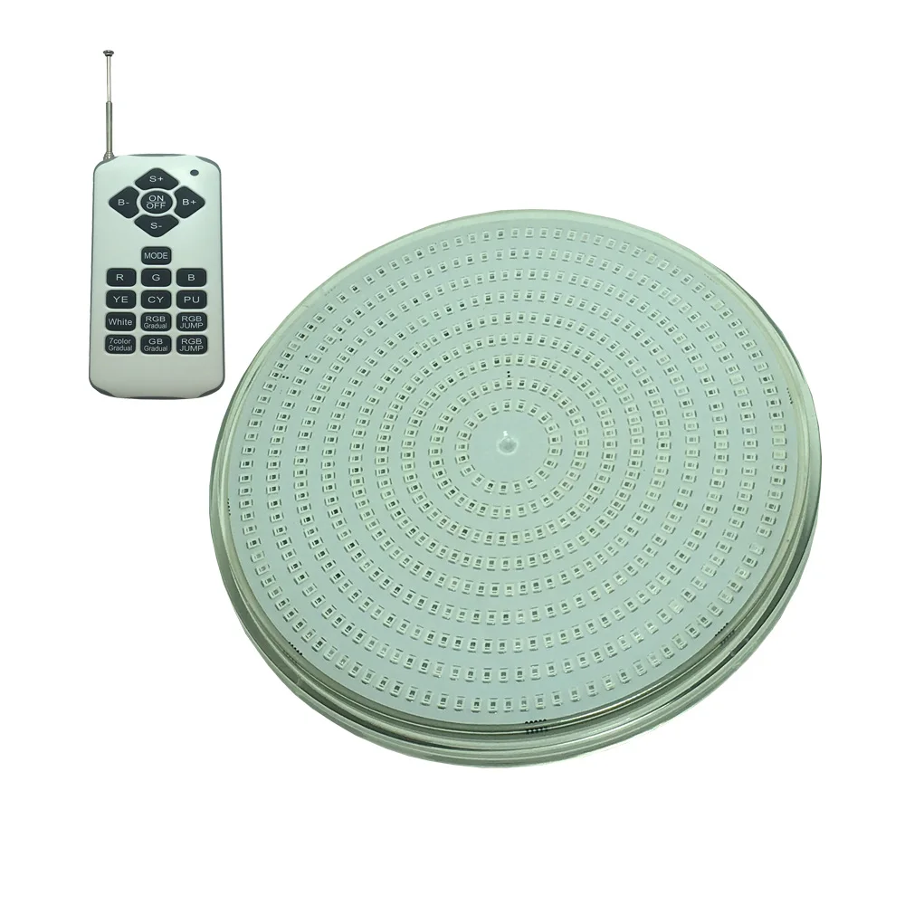Входное напряжение: 12 В AC/DCСветильник источник: SMD 2835 СветодиодныйВатт: 18 Вт/24 Вт/30 Вт/35 Вт/42 ВтЛюмен: 18 Вт = 1746лм, 24 Вт = 2328лм, 30 Вт = 2910лм, 35 Вт = 3395лм, 42 Вт = 4074лмМатериал корпуса лампы: пластикРазмер: d176xh43ммЧастота дистанционного управления: 433 ГцАккумулятор для пульта: 12 В, 23A/27AКласс водонепроницаемости: IP68 (можно положить в воду напрямую).Мощность кабеля: с 1,5 метрСрок службы: 50000 часовГарантия: 2 годаСветодиодный Вариант цвета: теплый белый (2700-3500K), чистый белый (5500-6300K), RGB с пультом дистанционного управления, RGB без пульта дистанционного управления (светодиодный внешний контроллер)