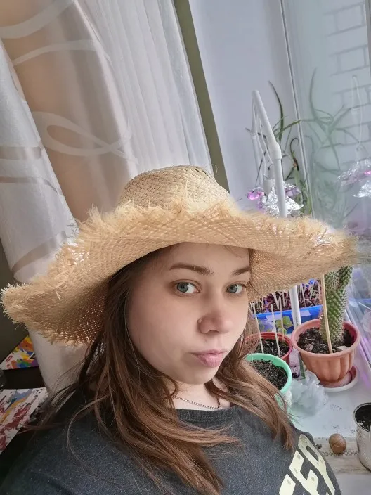 Шляпа пришла быстро и хорошо упаковано . На фото выглядит шикарно ! НО в жизни полный хлам . Она такая легкая, что от малейшего ветра будет улетать с головы. Когда я взяла её в руки распакованную по ней очень много нюансов по всей. В общем цена ей грн 50 максимум. Я такой ещё не видела легкой и не качественно шляпы