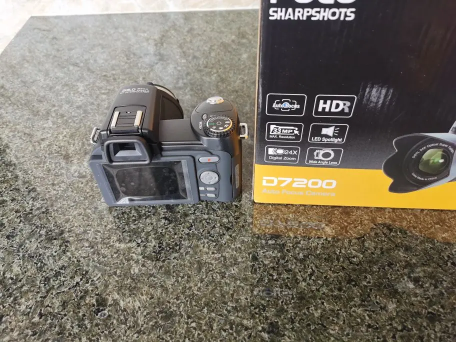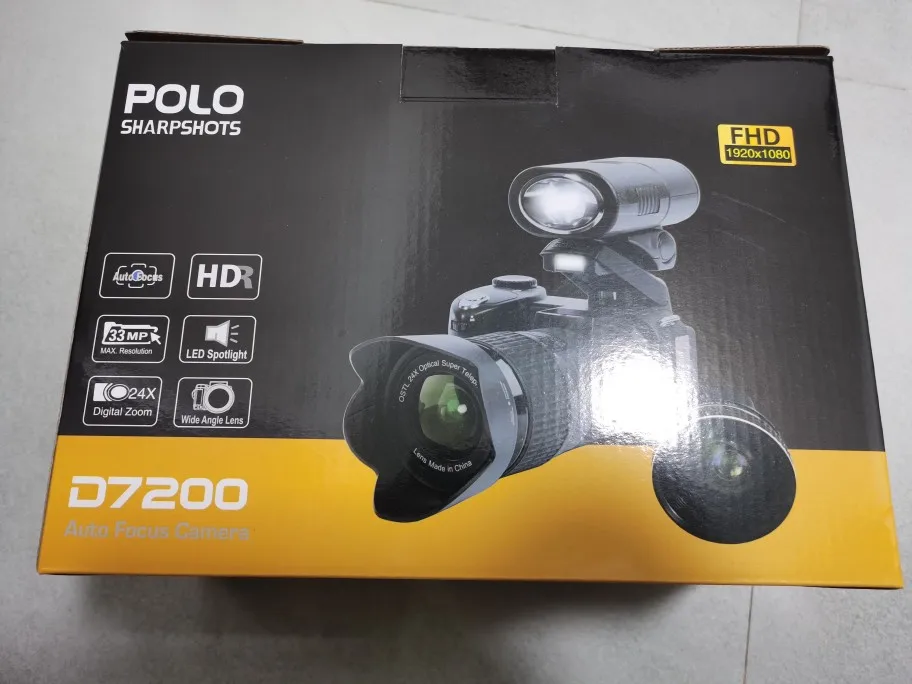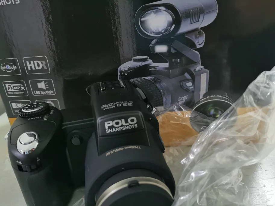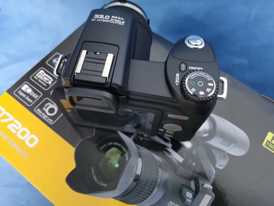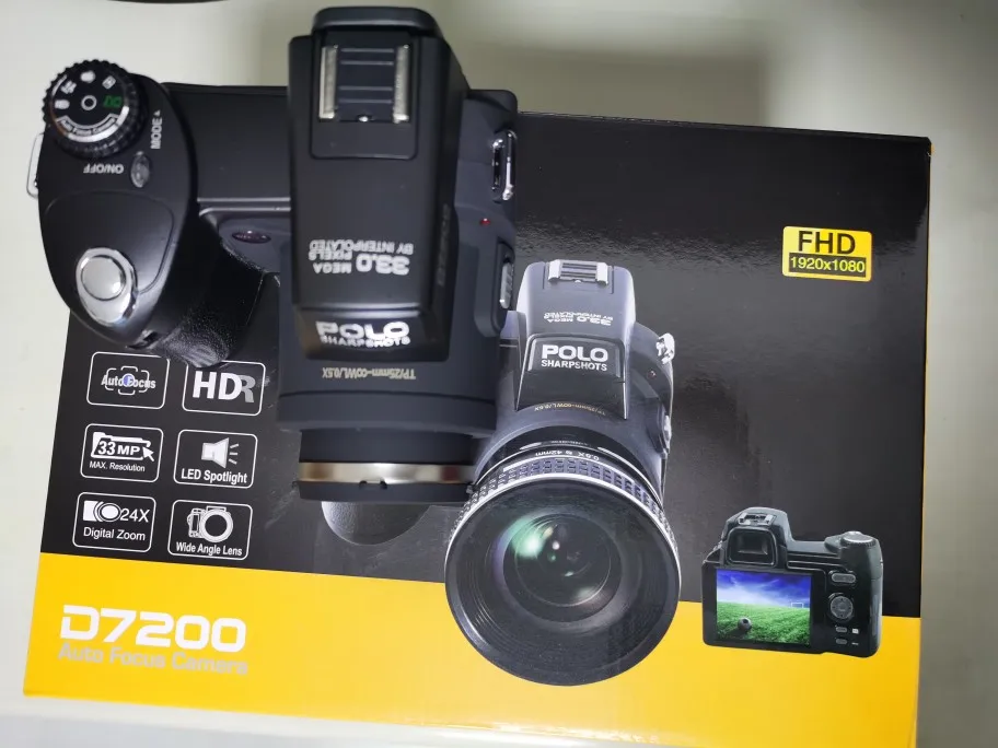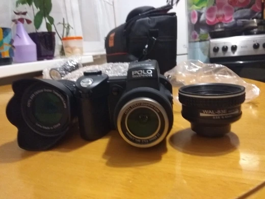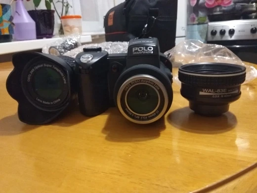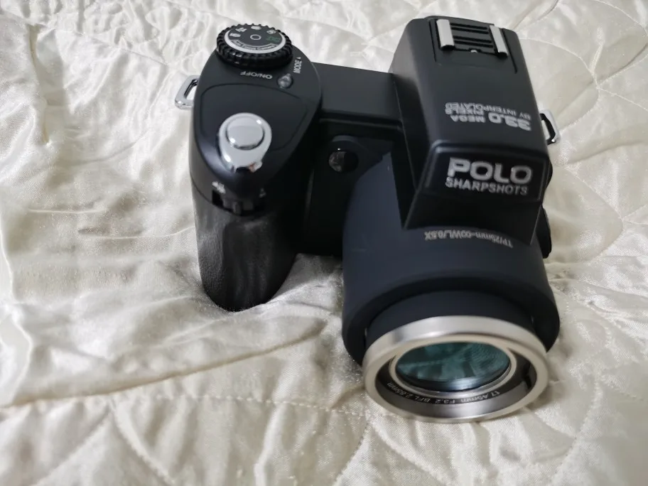 PoloD7200 – это фотодатчик от китайского телефона, помещенный в красивый корпус псевдозеркалки с тремя линзами-насадками без какой либо автоматической фокусировки и без возможности контролировать основные параметры съемки, создающий очень плохое качество изображения. Емкость аккумулятора указанная в инструкции не совпадает с емкостью написанной на самом аккумуляторе. Дисплей прикрыт очень тонким пластиком, и, если на него слегка надавить – видно как кристаллы начинают ‘плавать’. Дисплей имеет 230.400 пикселей (960*240) Есть и встроенная вспышка, для активации которой ее нужно поднимать вручную, никакой кнопки для этого не предусмотрено. Вспышка маломощная, при съемке со вспышкой зазор между тестовыми импульсами и основным импульсом очень большой.Одна из них – возможность снимать с максимальным размером фотографии на 33 мгп. Вот только беда в том, что 33 МП – это чистой воды интерполяция. Матрица камеры имеет только 5 ‘чистых’ мегапикселя (2560 Х 1920), которые программно раздуваются