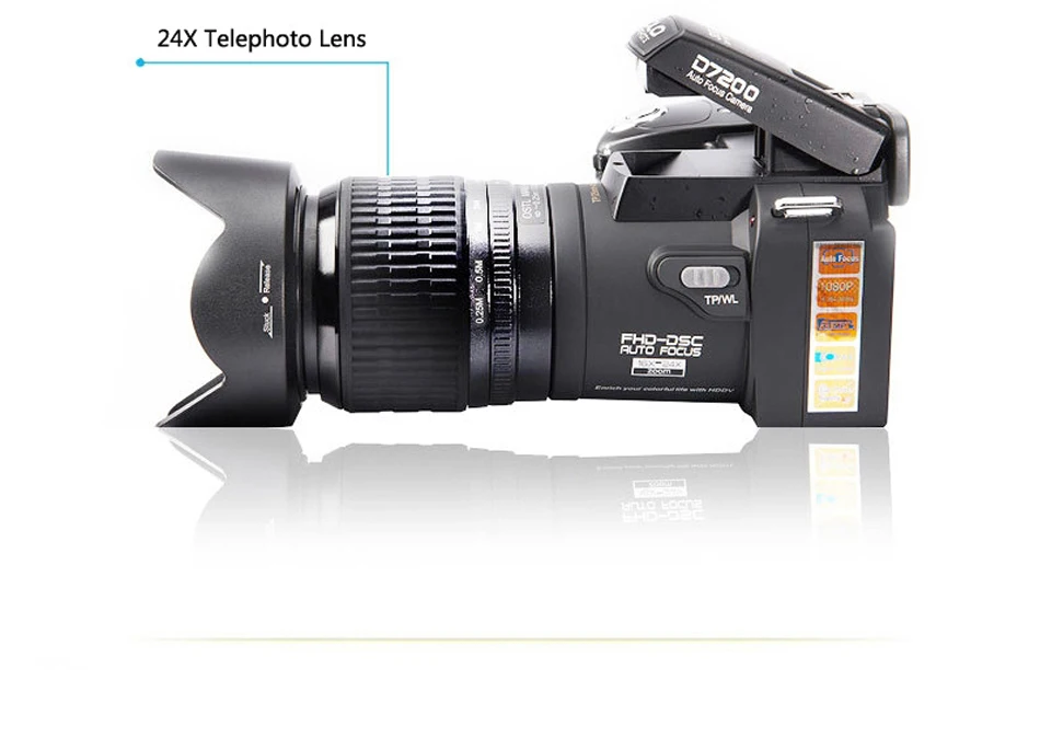 Цифровая камера ELRVIKE 2022 HD POLO D7200, 33 миллиона пикселей, автофокус, профессиональная цифровая зеркальная видеокамера 24X, оптический зум, три объектива