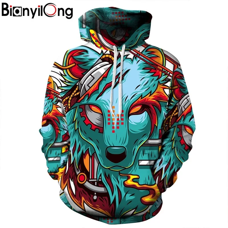 Толстовка Мужскаяженская с капюшоном, Модная тонкая худи с 3D креативным принтом демона, волка, индивидуальный пуловер с капюшоном, осень 2019