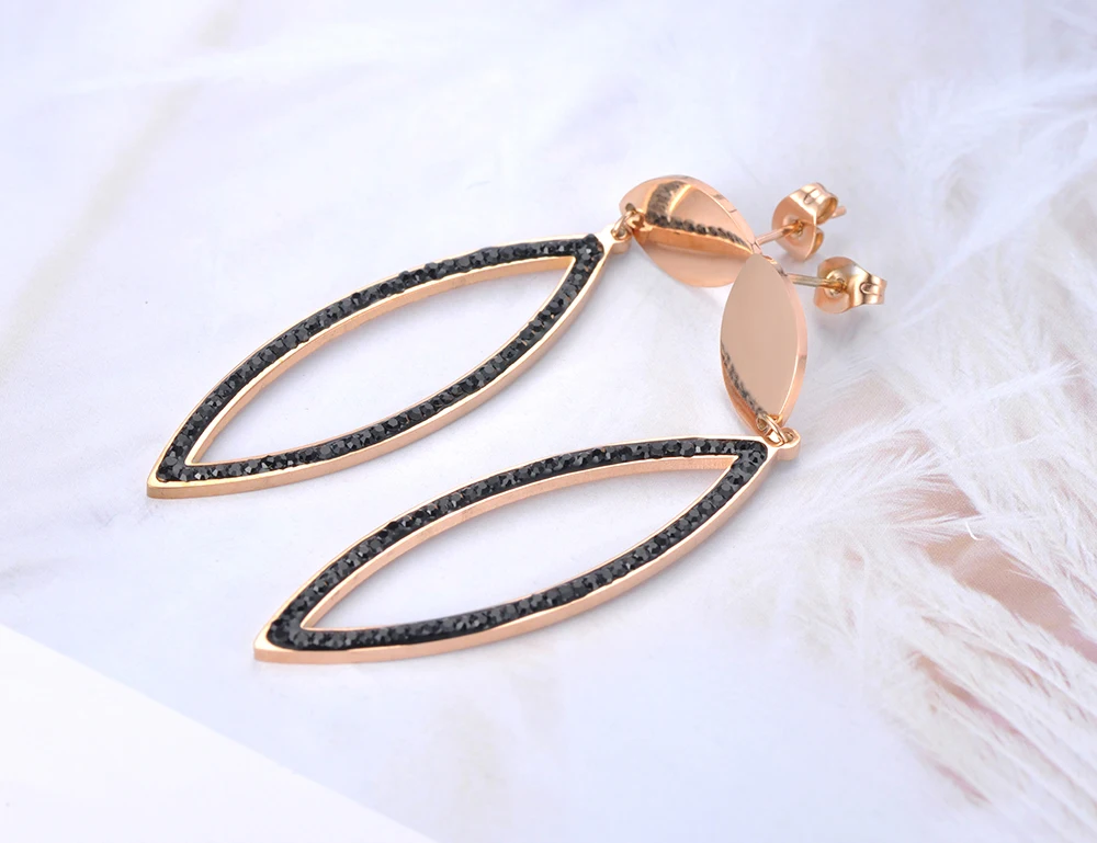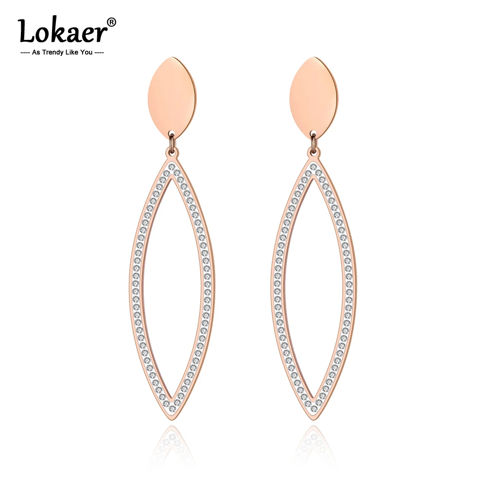 Женские серьги конский глаз Lokaer, модные геометрические серьги из нержавеющей стали цвета розового золота с блестящими кристаллами, E19114