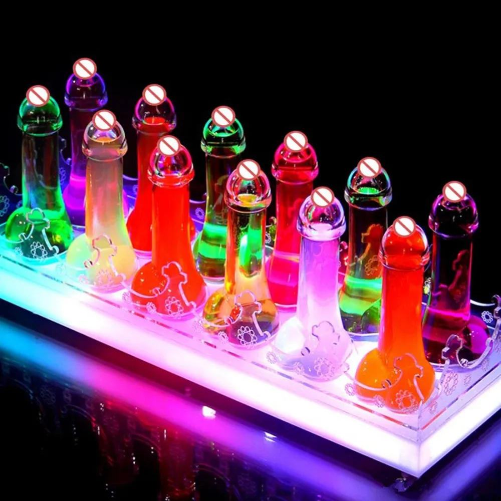 1 комплект, перезаряжаемый светящийся светодиодный стеклянный поднос, держатель для чашки в виде пули с пенисом, стеклянная чашка, бар, украшения для дискотевечерние