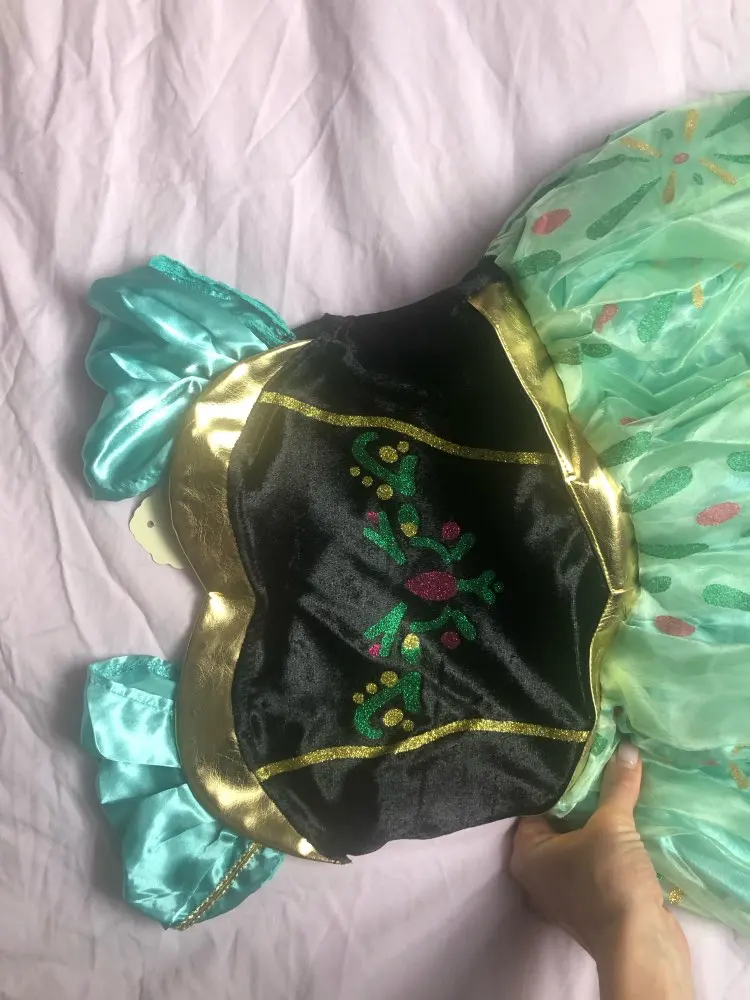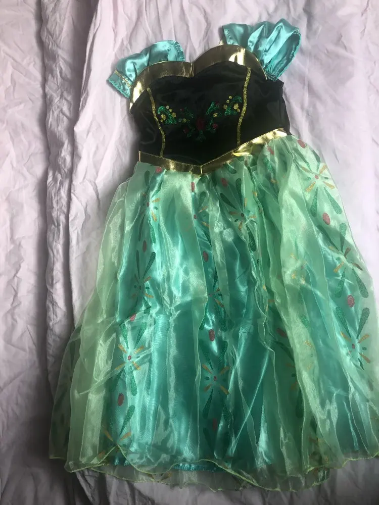 Этот костюм красивый! И товар прибыл очень быстро! Доставка в Израиль займет менее 2 недель. Моя дочь очень рада этому, и аксессуары тоже очень красивые. У меня есть только два комментариев-размер, я хотел получить размер, чтобы он не был слишком мал, поэтому я купил 7 Размер (140 см) для 6 лет, и он большой, мой 8 лет/о тоже попробовал его, и он также большой на ней, поэтому убедитесь, что вы будете следить за ростом ваших детей. Кроме того, перчатки красивые, но я не уверен, насколько хорошо они будут держать, так как они действительно деликатны и быстро портят (прошло всего 2 дня с момента прибытия, см. Изображение). Но другие тогда, что я настоятельно рекомендую этот продавец! Он был великолепен!