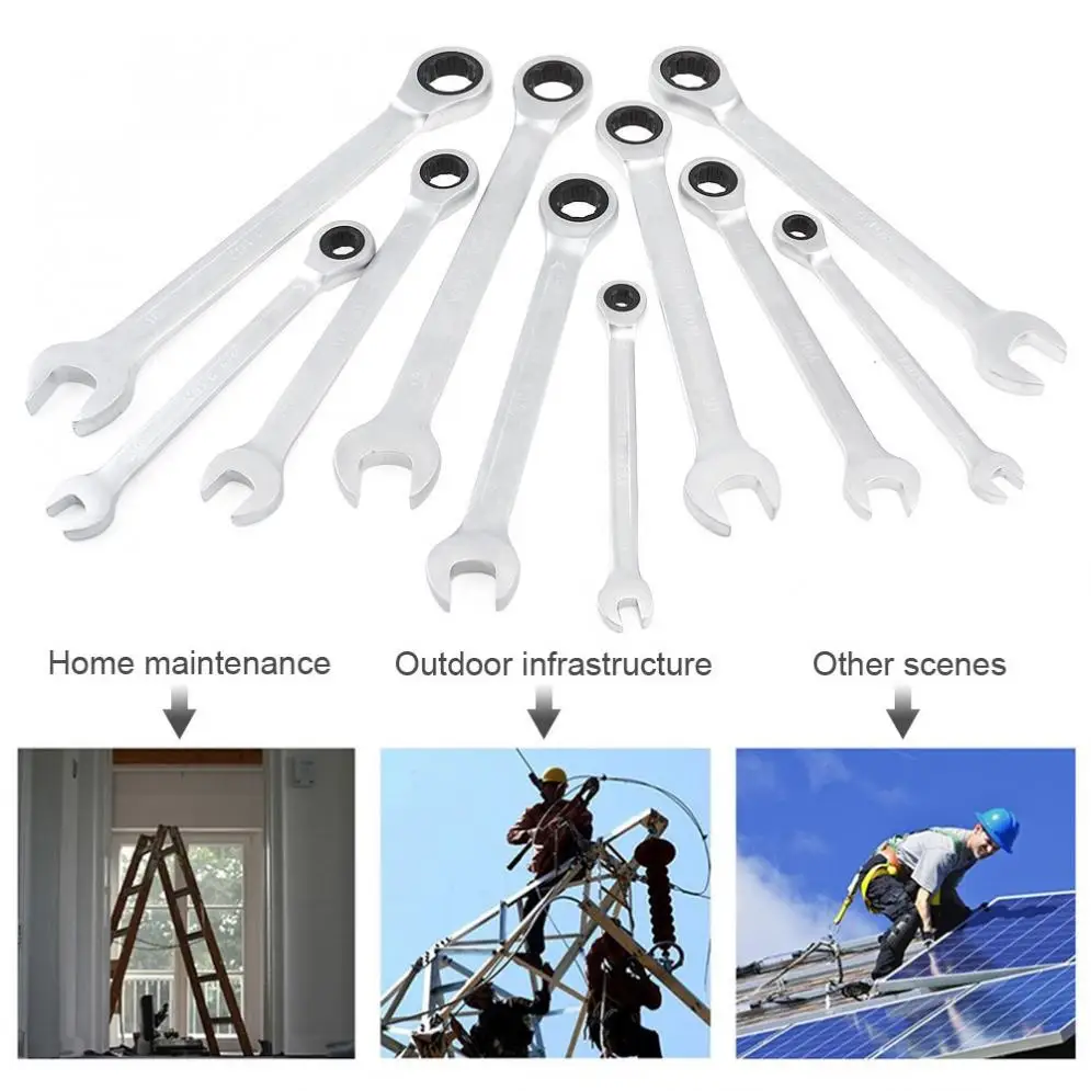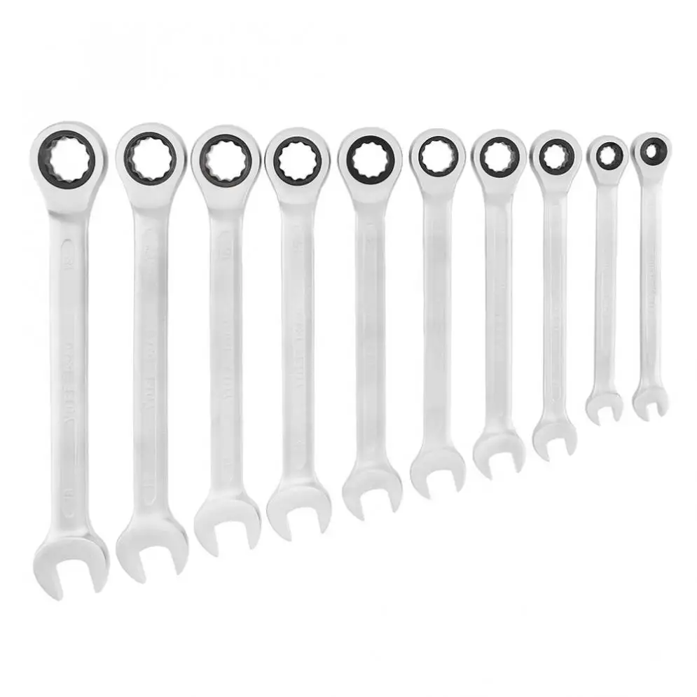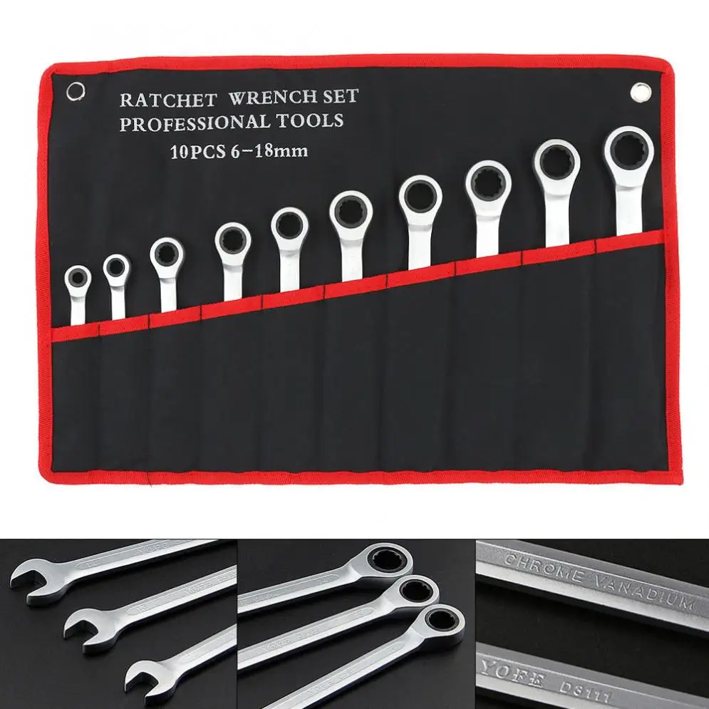 10 шт.лот фиксированная Насадка ключ с храповым механизмом 8 мм-19 мм CRV КЛЮЧ с храповым механизмом аппаратные средства с тряпичной сумкой в комплекте для домаофисастроительной площадке