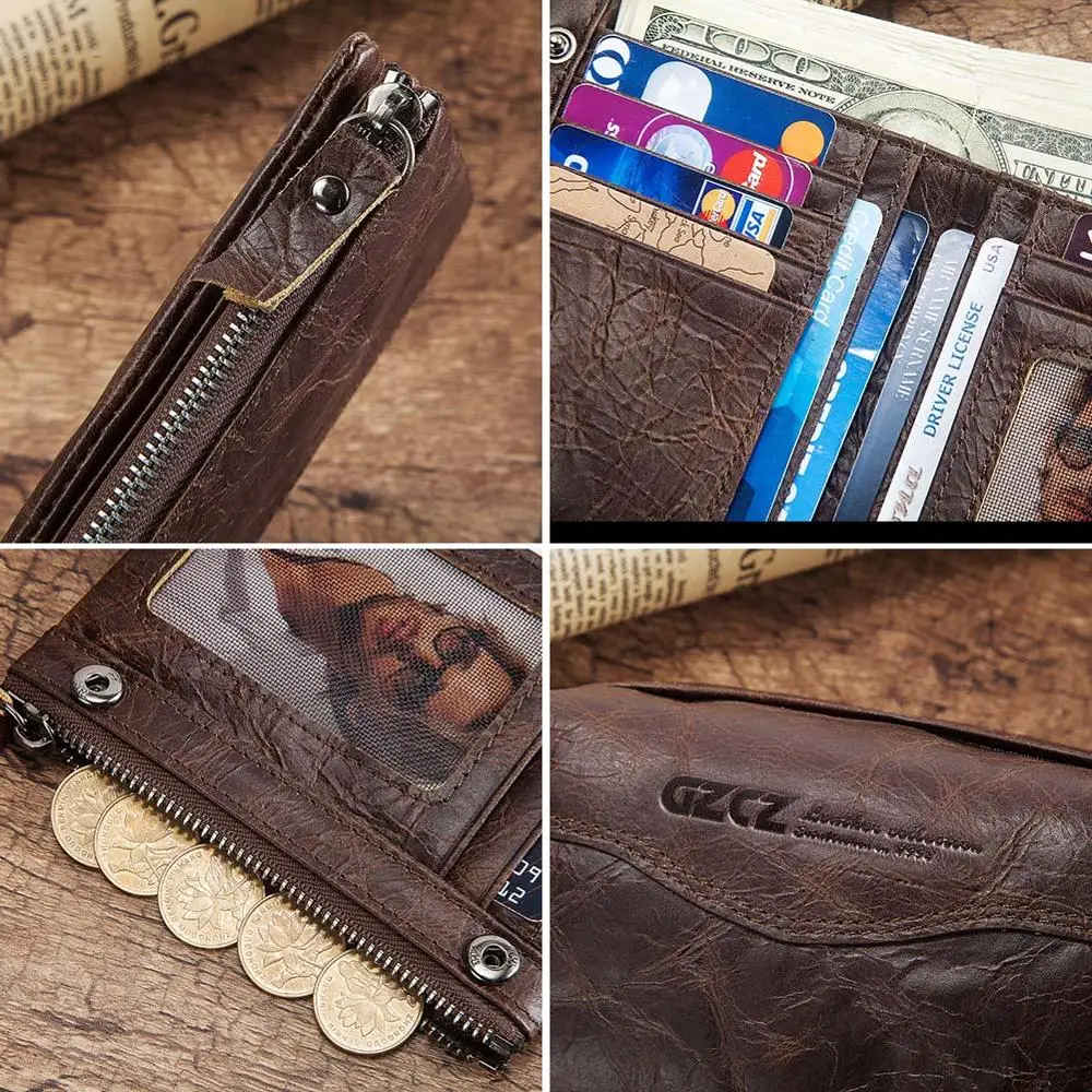 GZCZ мужской кошелек из 100% натуральной яловой кожи, портфель, муж...