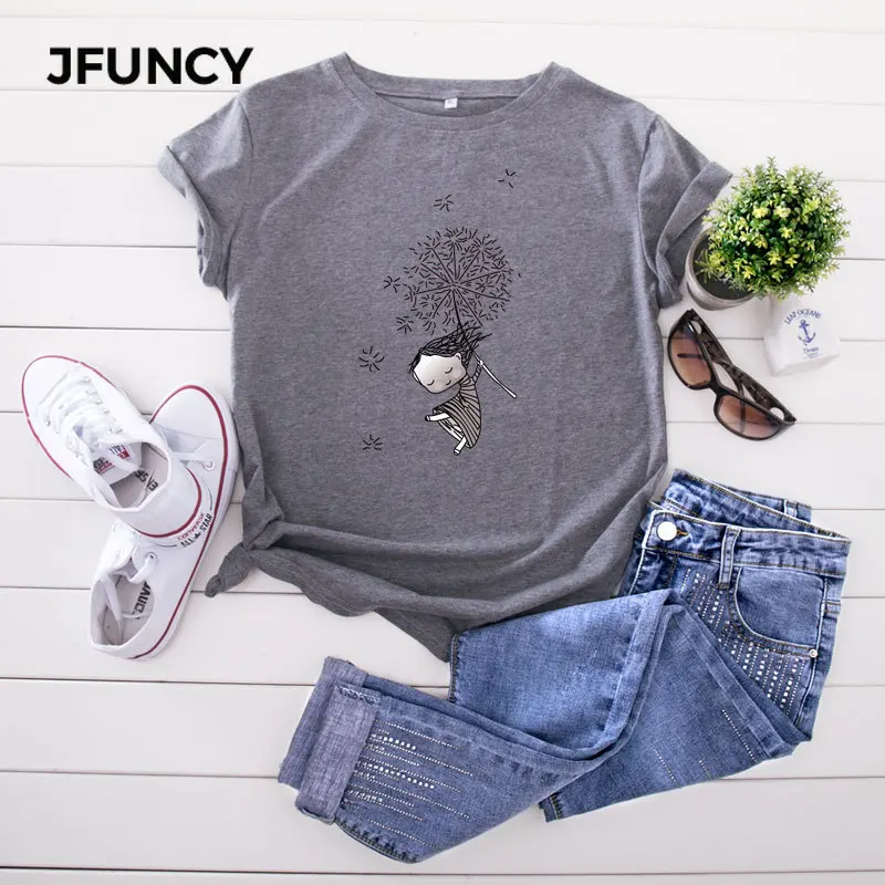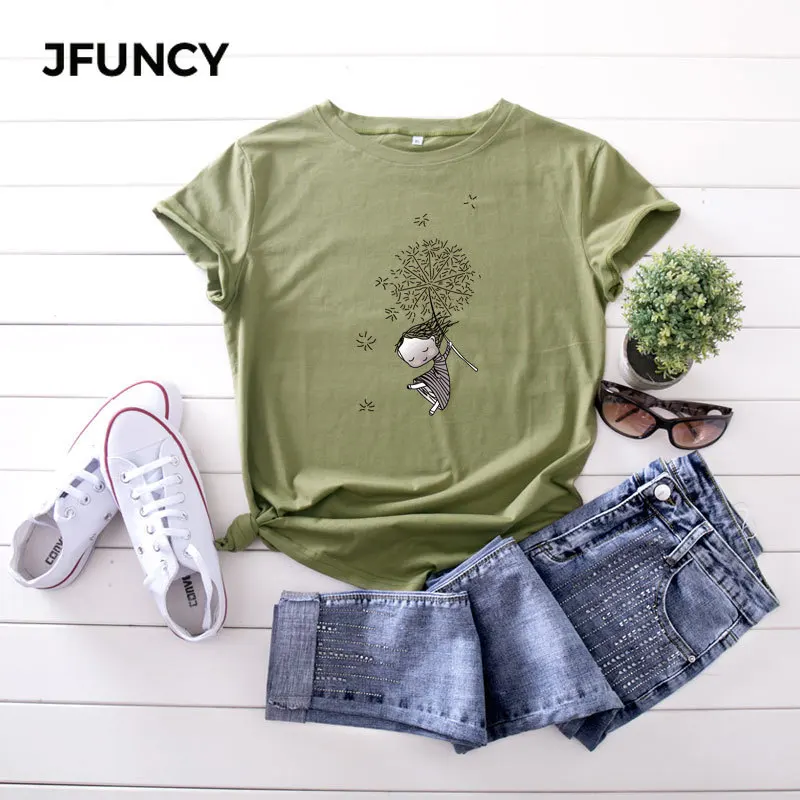 JFUNCY Женская хлопковая Футболка Модные Kawaii Harajuku Графические футболки летние женские футболки с коротким рукавом женские футболки одежда