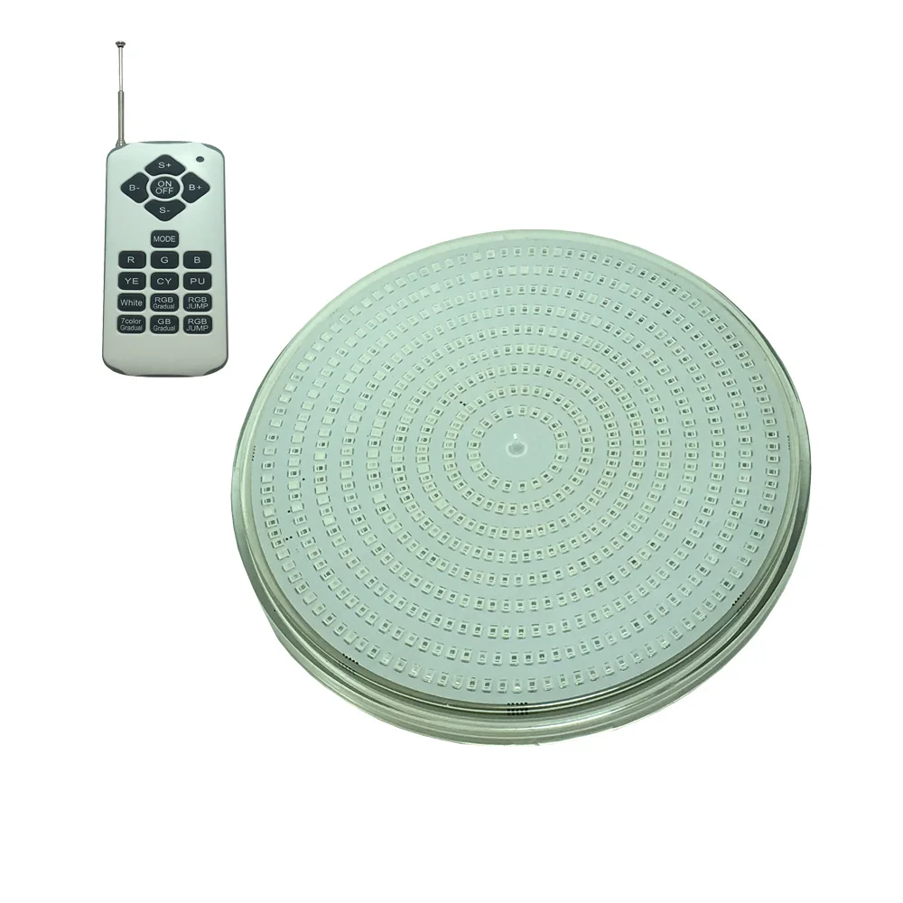 Входное напряжение: 12 В переменного/постоянного токаИсточник светильник: светодисветодиодный SMD 2835Ватт: 18 Вт/24 Вт/30 Вт/35 Вт/42 ВтЛюмен: 18 Вт = 1746 лм, 24 Вт = 2328 лм, 30 Вт = 2910 лм, 35 Вт = 3395 лм, 42 Вт = 4074 лмМатериал корпуса лампы: пластикРазмеры: d176xh43ммЧастота пульта дистанционного управления: 433 ГцБатарея для пульта дистанционного управления: 12 В, 23 а/27 АКласс водонепроницаемости: IP68 (можно положить в воду напрямую).Кабель питания: 1,5 мСрок службы: 50000 часовГарантия: 2 годаВарианты светодиодный: теплый белый (2700-3500K), чистый белый (5500-6300K), RGB с пультом дистанционного управления, RGB без пульта дистанционного управления (светодиодный Одом с помощью внешнего контроллера)