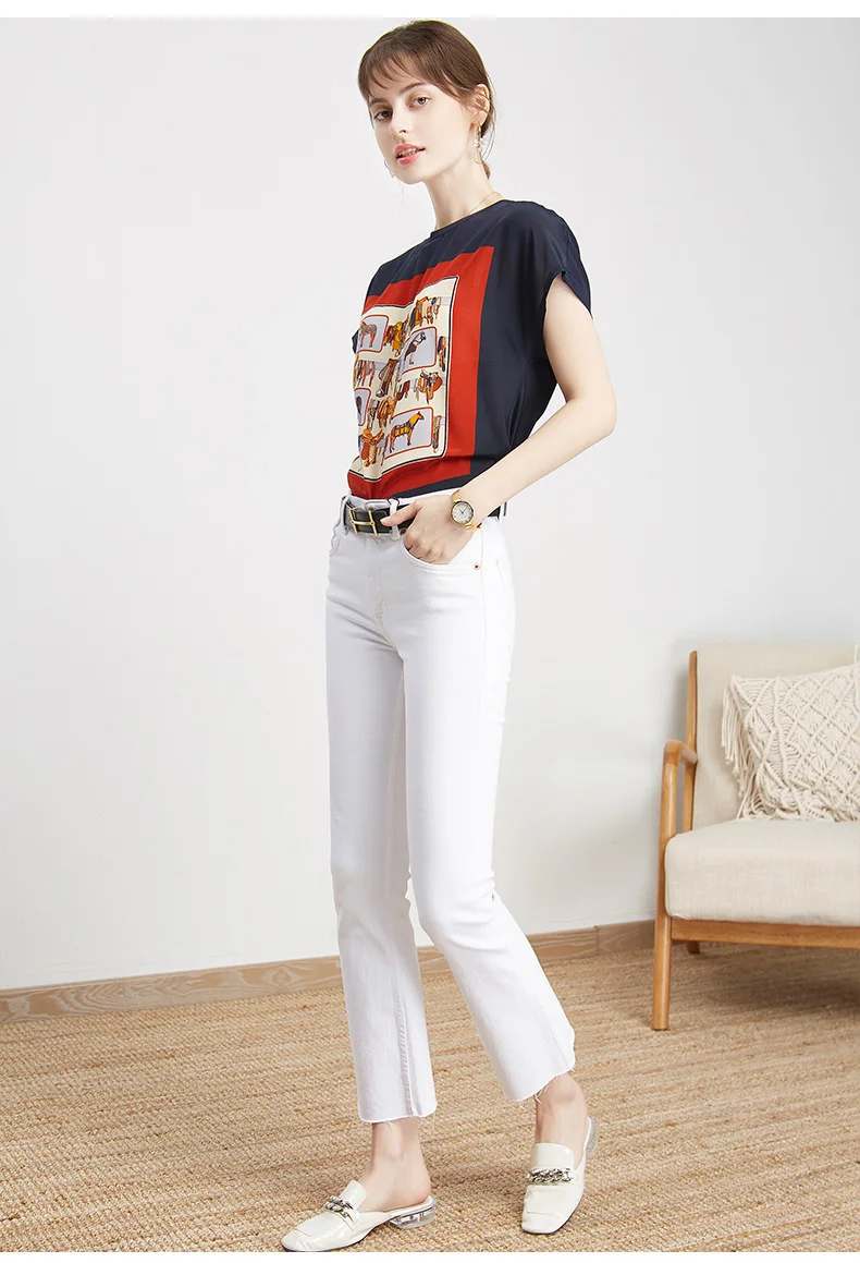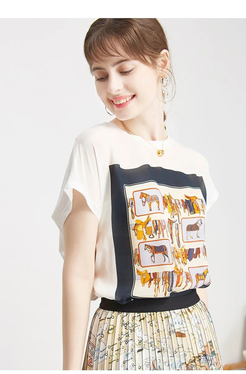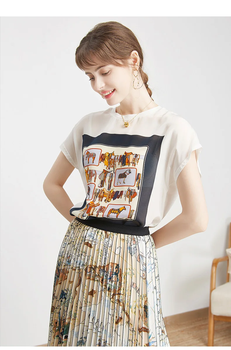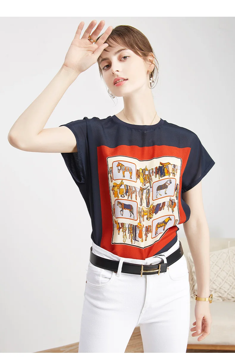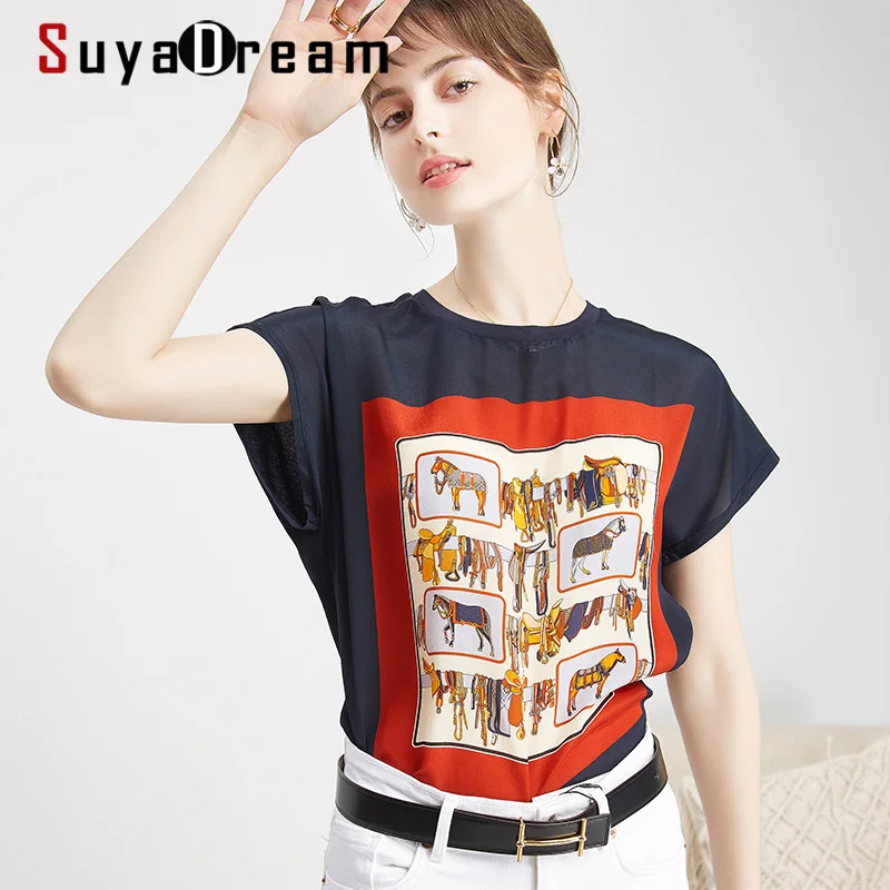 SUYADREAM Женская футболка из 100% натурального шелка с короткими рукавами летучая мышь, повседневные рубашки с круглым вырезом, весна-лето 2022