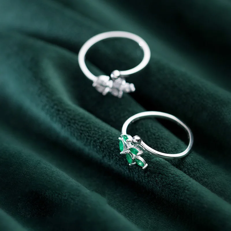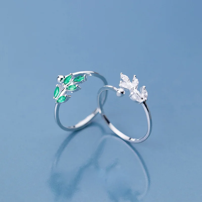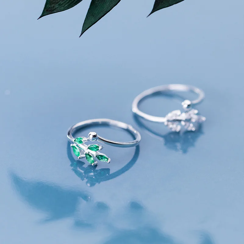 Кольцо женское из серебра 925 пробы, с листьями