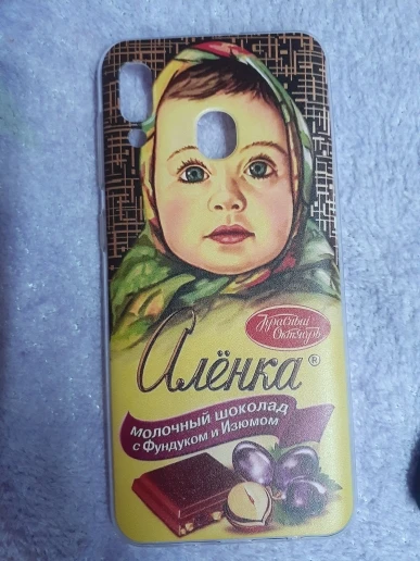 Заказ пришёл в срок. Чехол хорошего качества, сел плотно. Единственный минус в том, что на Самсунг галакси А20S посередине окошко для отпечатка пальца и, получается что он находится на лбу у Алёнки.