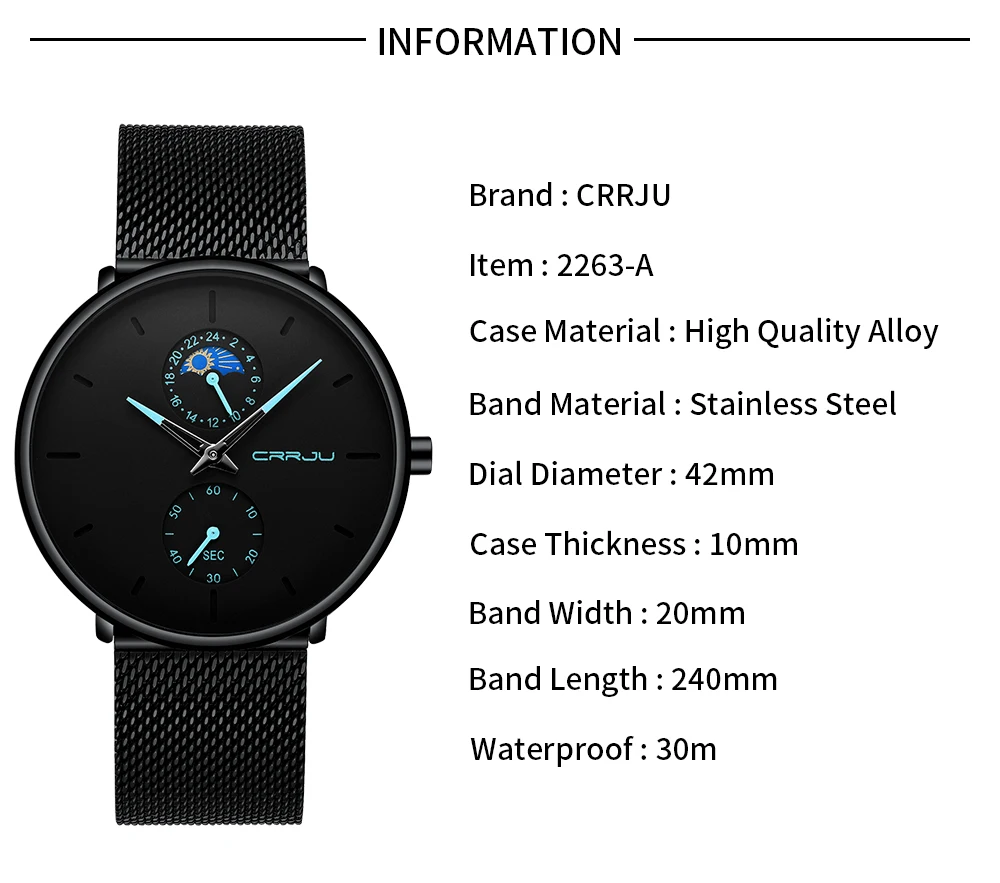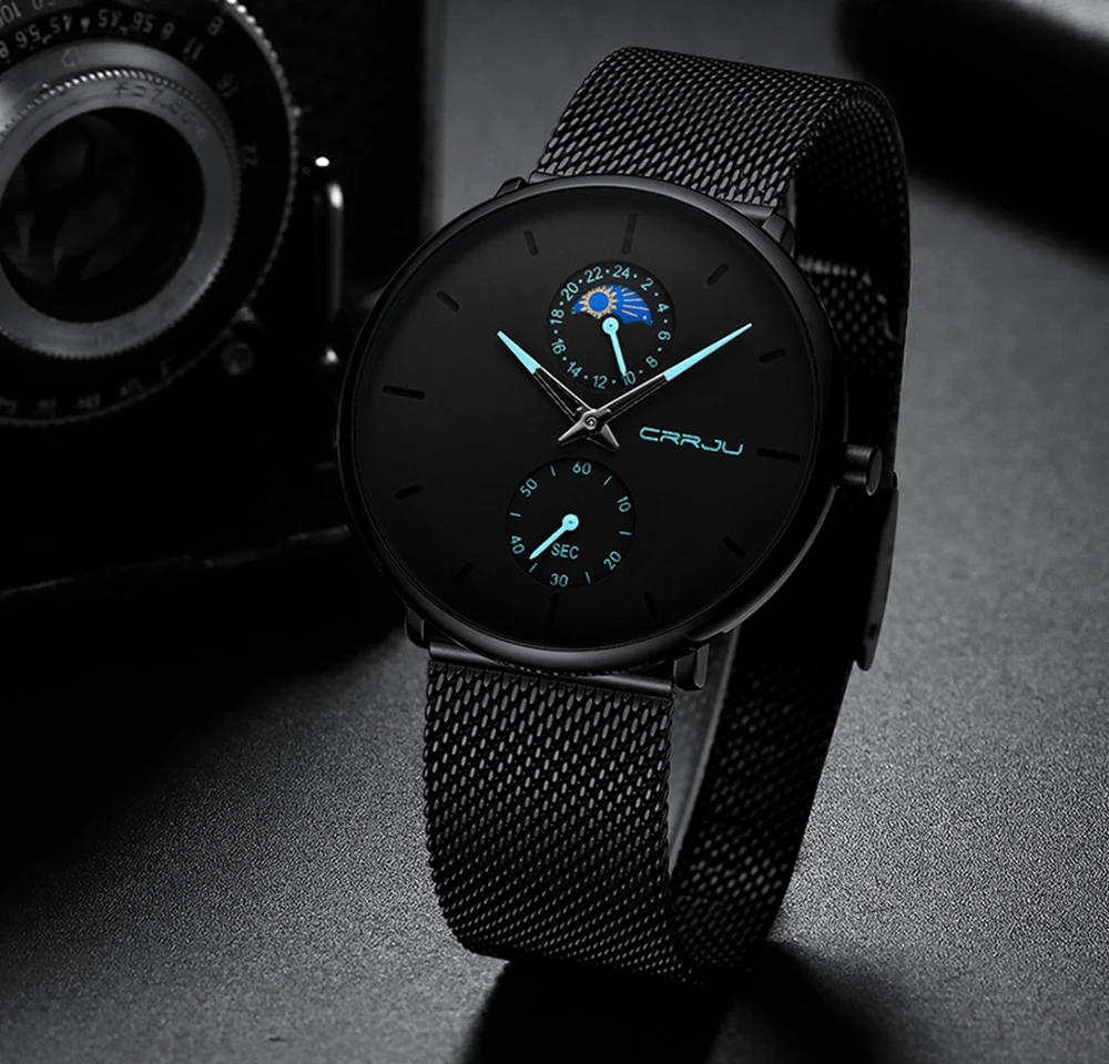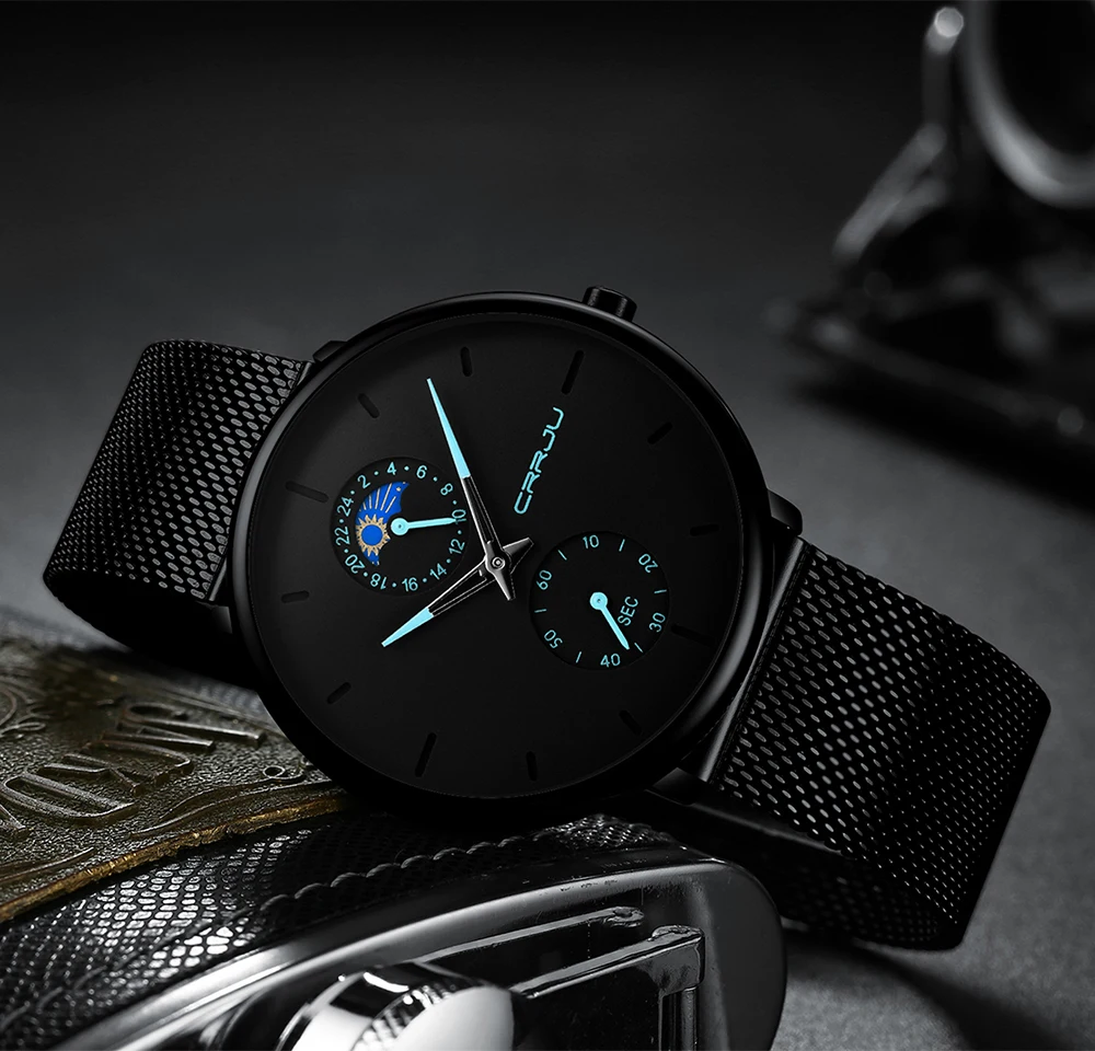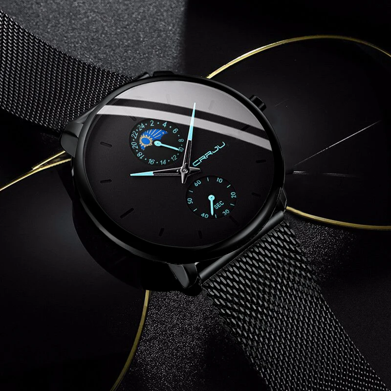 Часы CRRJU мужские наручные кварцевые, брендовые Роскошные деловые ультратонкие спортивные водонепроницаемые с сетчатым ремешком