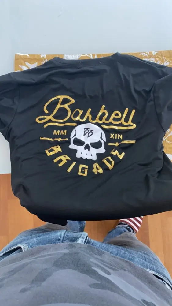 Товар точно такой же, как в описании, буквы выглядят желтыми на фотографиях, но на самом деле золотые, очень хорошее качество печати и ткань очень удобная и тянущаяся, так что это идеально подходит для тренажерного зала, служба доставки продавцом была действительно быстрой, большое спасибо!