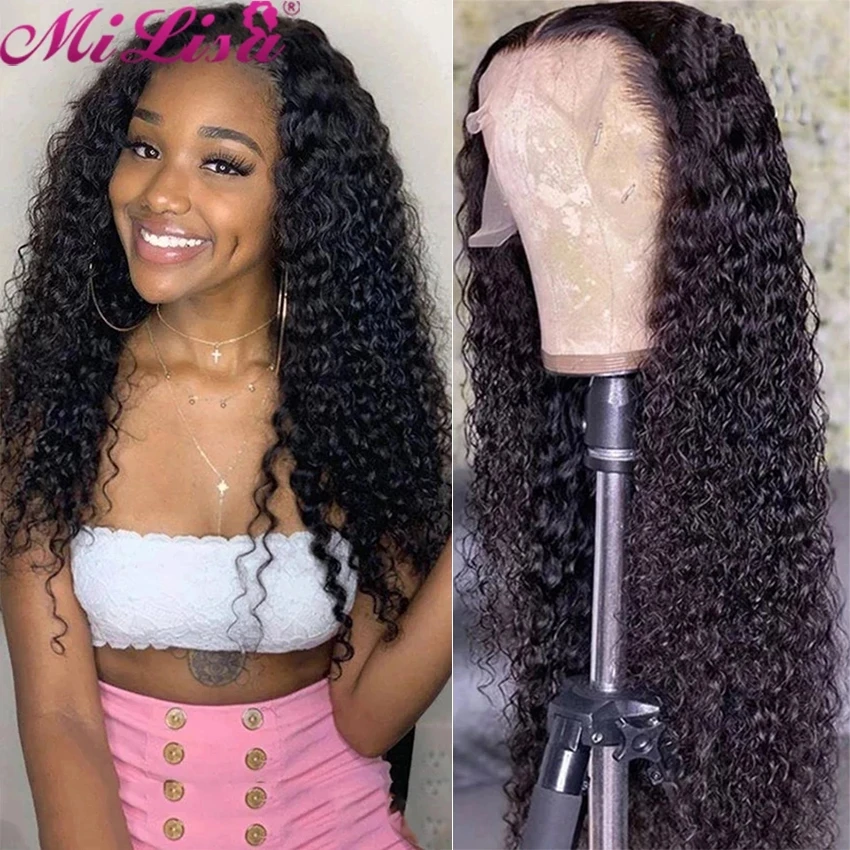 Парик с глубокой волной для женщин, предварительно выщипанные бразильские волосы Mi Lisa Remy T средней части, вьющиеся человеческие волосы, парик 5x5, парики на сетке
