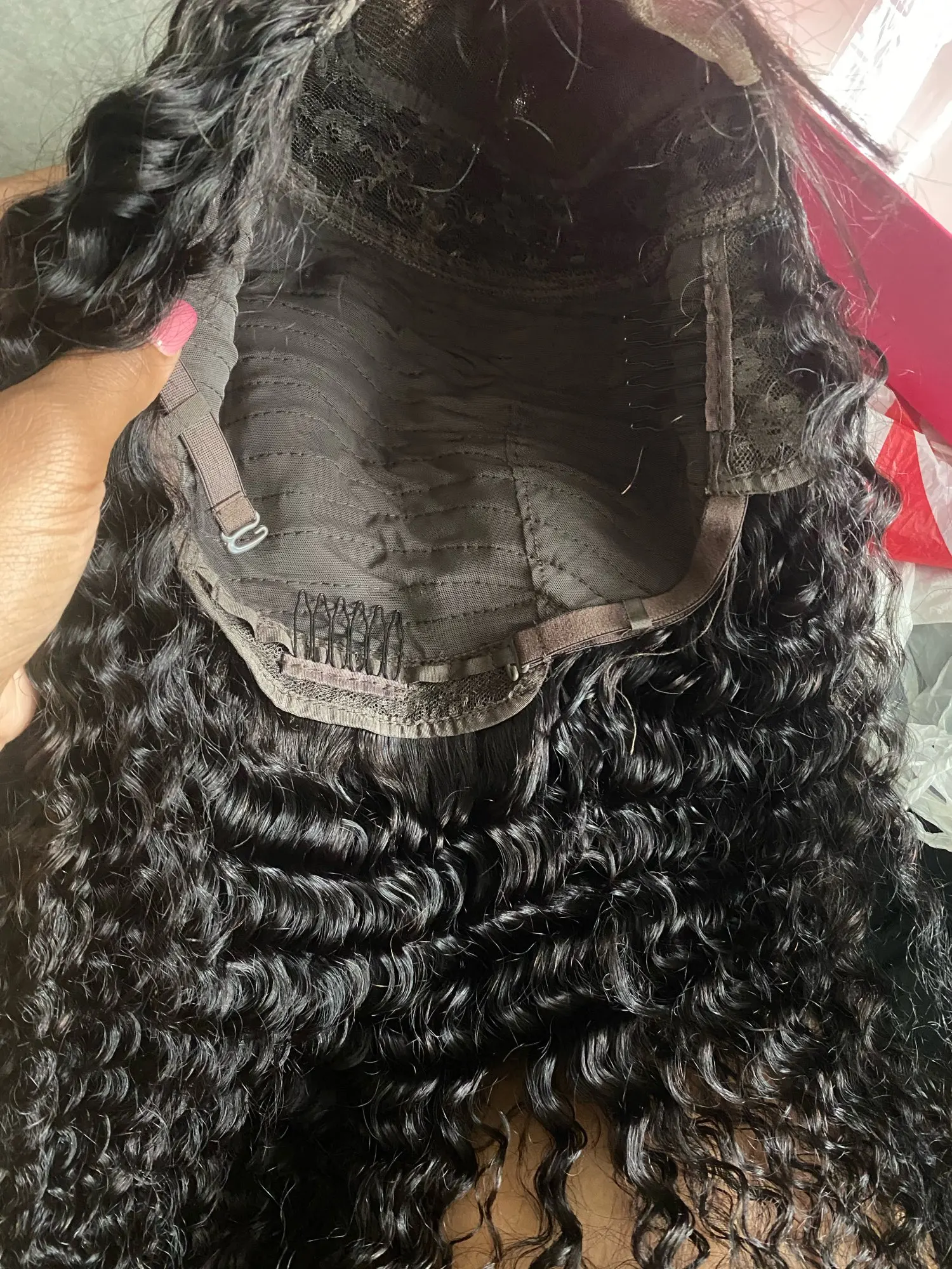 Волосы много линяют, и они были очень тонкими, они, вероятно, использовали один пучок волос, чтобы сделать этот парик