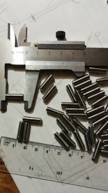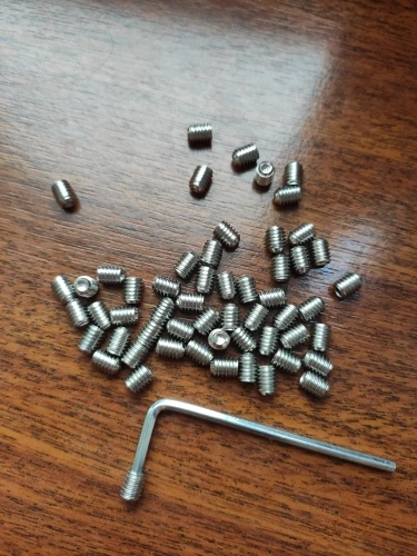 Покупал эти винты для использования в качестве шипов для педалей Shimano. Заказывал 50 шт., положили 56 шт. Вкручиваются они шестигранником на 3 мм. Длина винтов колеблется от 5,0 до 5,3 мм. Головка винтов не плоская, а имеет круглую впадину. К педалям винты подошли. Отмечу, что оригинальные шипы Shimano чуть меньше 5,0 мм в длину и имеют плоскую головку.