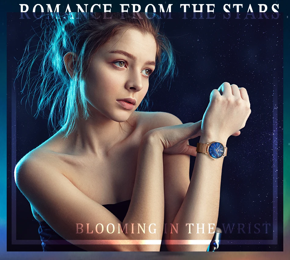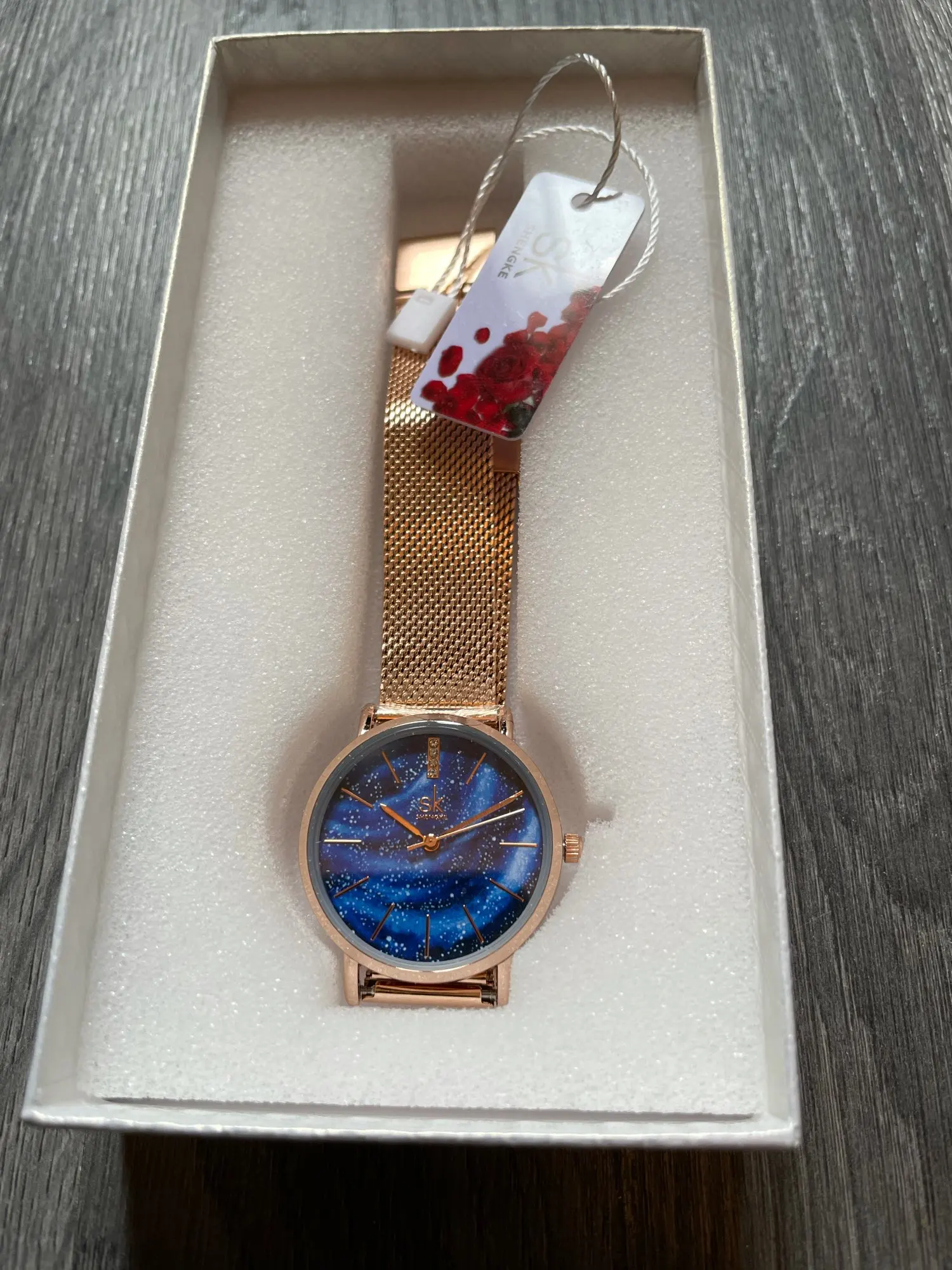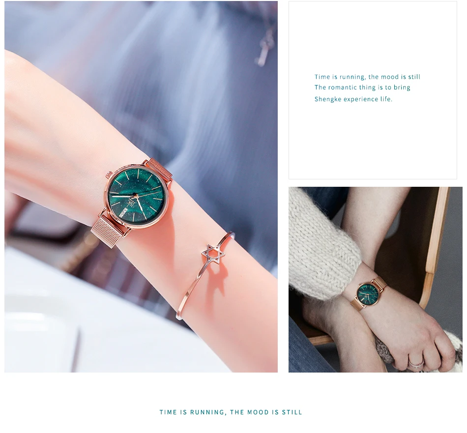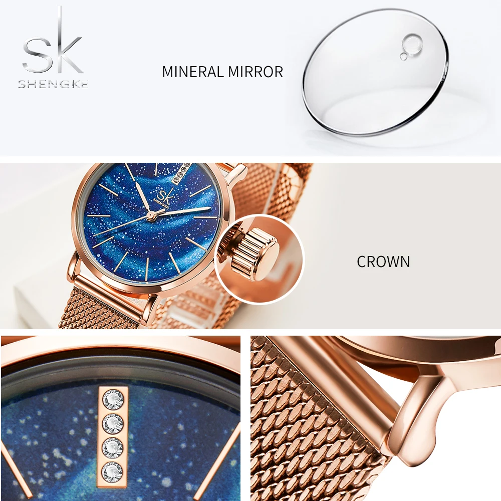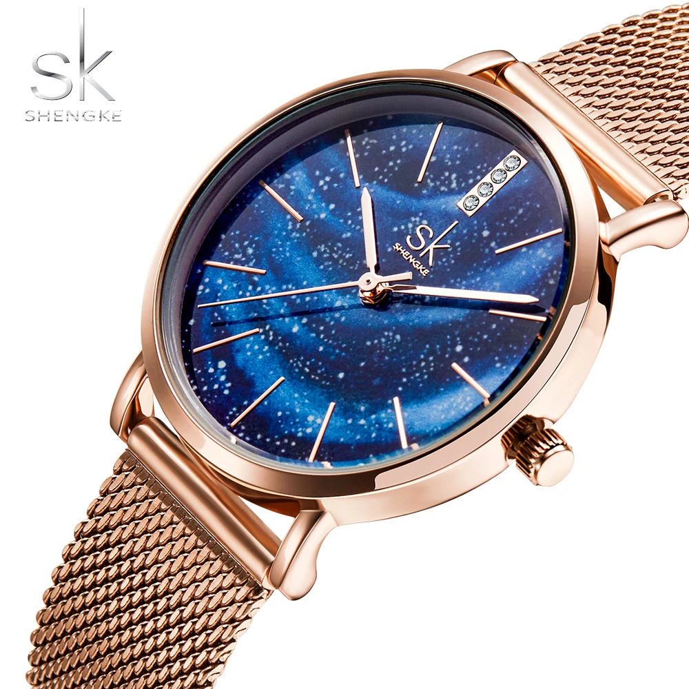 Shengke роскошные женские часы Романтические Звездный синий циферблат сетчатый Браслет из нержавеющей стали ультра тонкий чехол кварцевые наручные часы Reloj Mujer