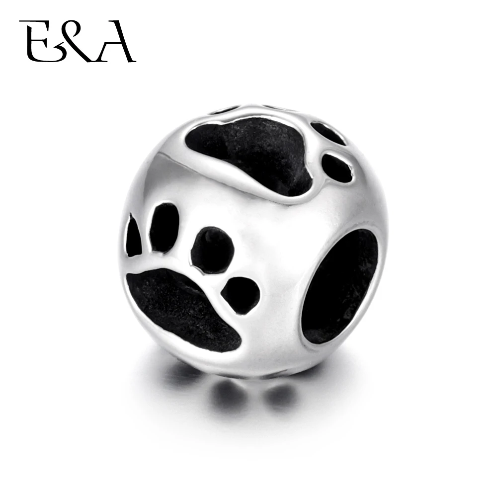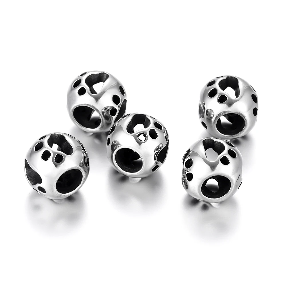 Бусины Из Нержавеющей Стали, отпечатки лап, полые отверстия 5,5 мм, металлические Европейские Бусины, браслеты, шармы, принадлежности для рукоделия, Ювелирная фурнитура