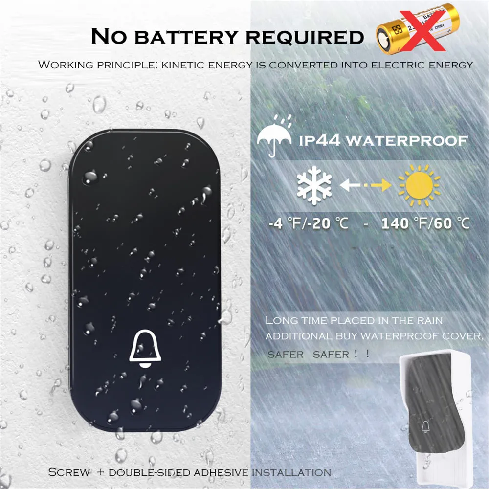 2. Наша Водонепроницаемая Кнопка класса IP44, общее использование не является проблемой, но сильный дождь может повлиять на продолжительность жизни, мы рекомендуем приобрести водонепроницаемую крышку, поэтому использовать дольше и безопаснее