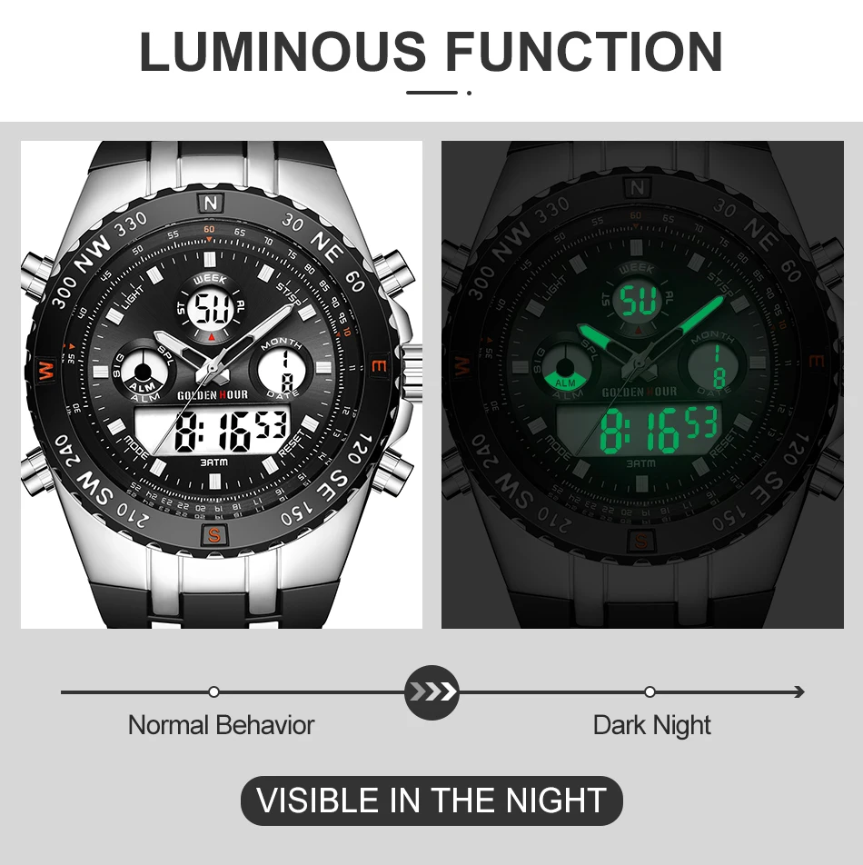 Артикул:GOLDENHOUR оригинальные мужские часы с двойным дисплеем