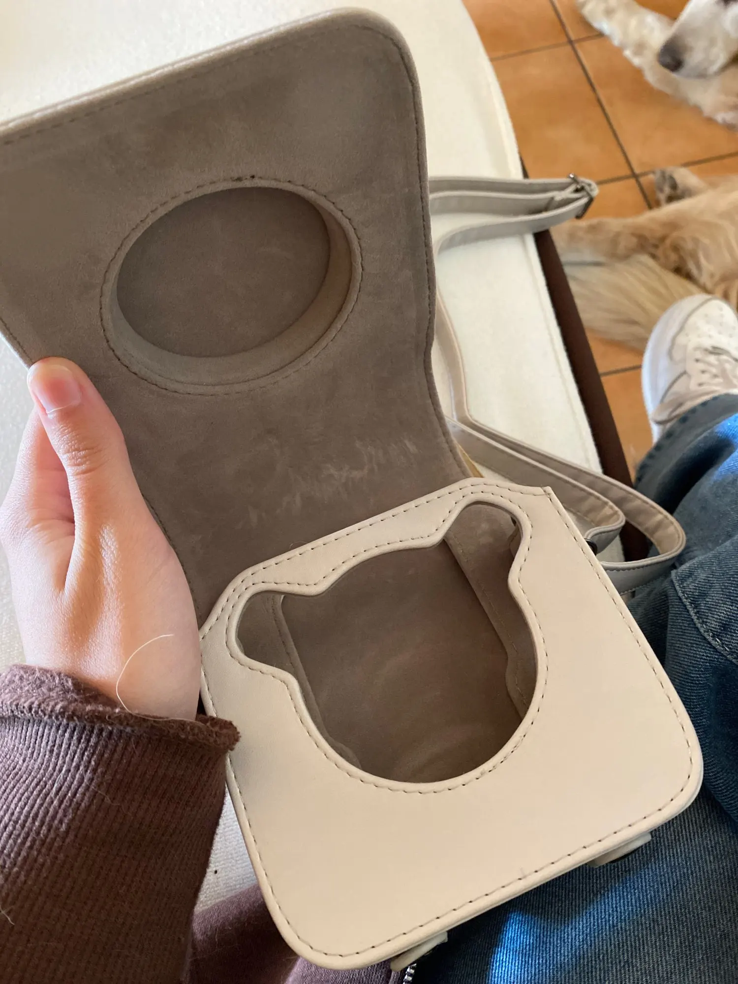 Отличный чехол, не поцарапанный. Крышка отстегивается (заклёпки). Есть ремешок. Всем довольна