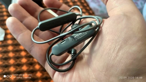 При включении сразу активирован aptx-HD, все работает. Подключил к наушникам Pioneer SE-CH9T звук очень хороший, громкость регулируется с нормальным шагом, комфортная 5-6 делений из 20. Провода нормальные мягкие, не слишком длинные, эти пластиковые штучки как раз лежат на плечах и не ёрзают, а провода не торчат в стороны. По поводу шума он есть, но очень тихий, если вы на улице то его не различить, и в песнях он чуть слышен на паузах. Он есть у многих блютус наушников, а также на проводных как у меня изза их высокой чувствительности. Поэтому не понимаю какие идиоты изза него ставят 0, он не мешает.