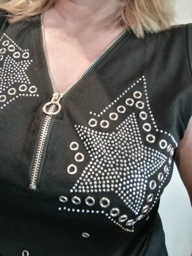 Футболка женская стрейчевая с бисером, танк-топы хлопок, на молнии, с V-образным вырезом, без рукавов, Облегающая майка, черный цвет, 5XL, размера плюс