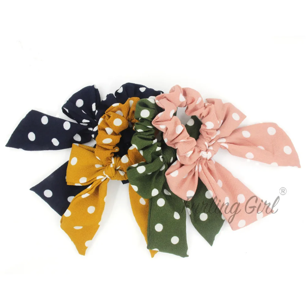 Модные Винтажные резинки для волос с цветочным принтом и бантом Рез...
