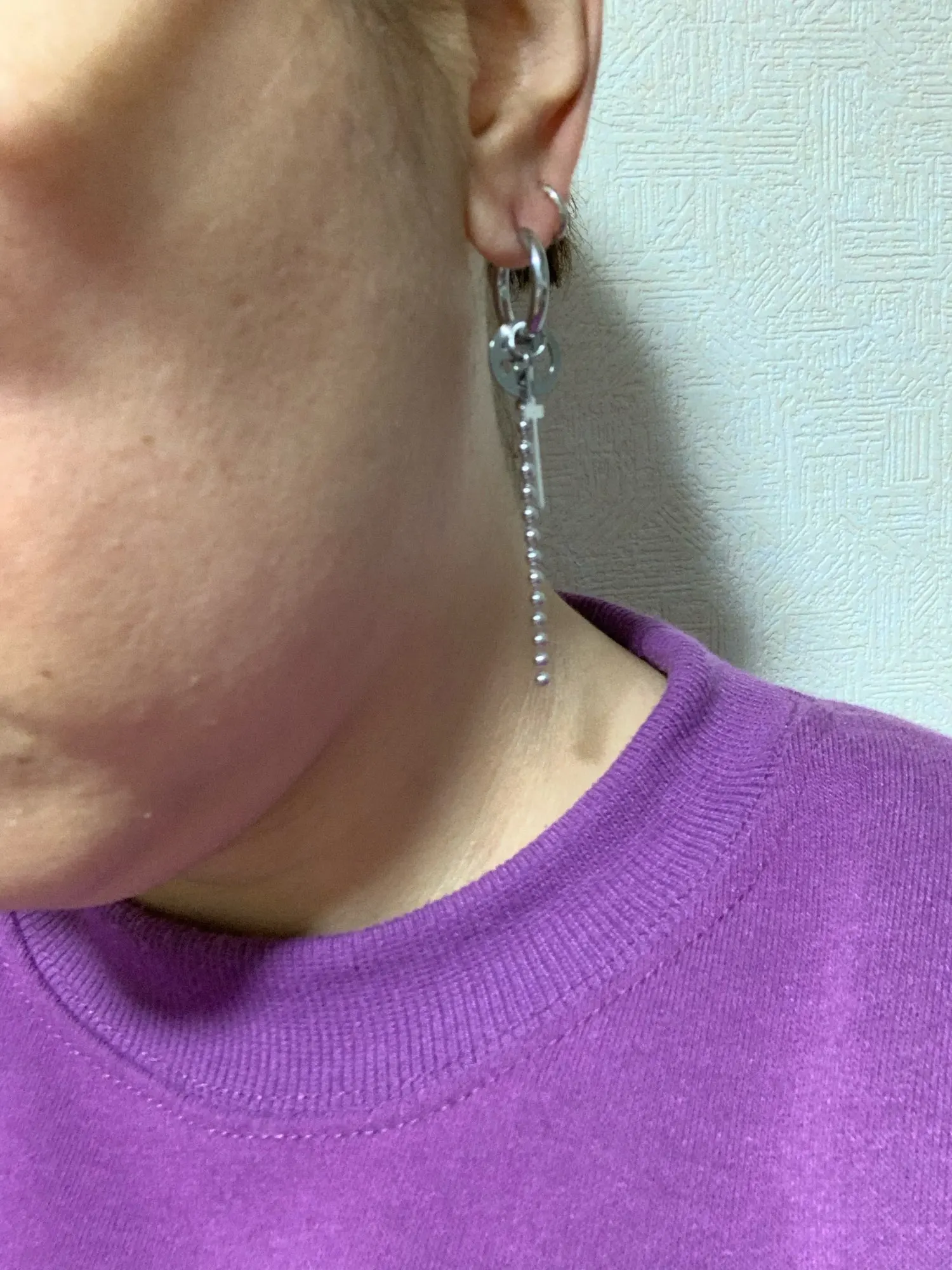 Качество очень понравилось. правда одна штучка потерялась, но в целом довольна что заказала) единственный минус, это что по началу я не понимала как его закреплять. одевается он очень легко, но бывает ухо побаливает)