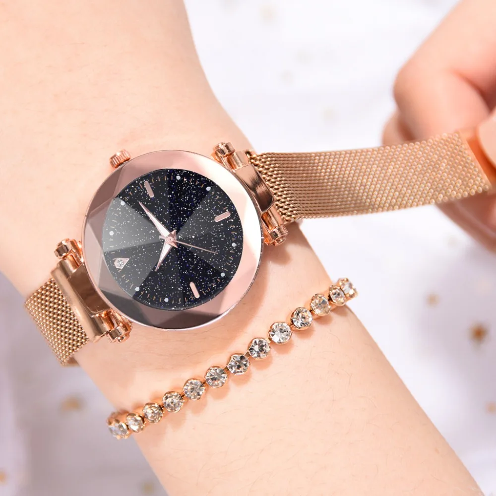 Шикарные женские роскошные модные светящиеся часы звездного неба элегантные фиолетовые магнитные Женские кварцевые наручные часы ЖЕНСКИЕ НАРЯДНЫЕ часы