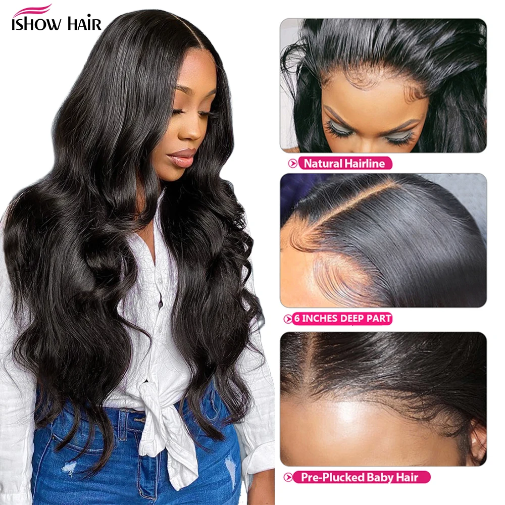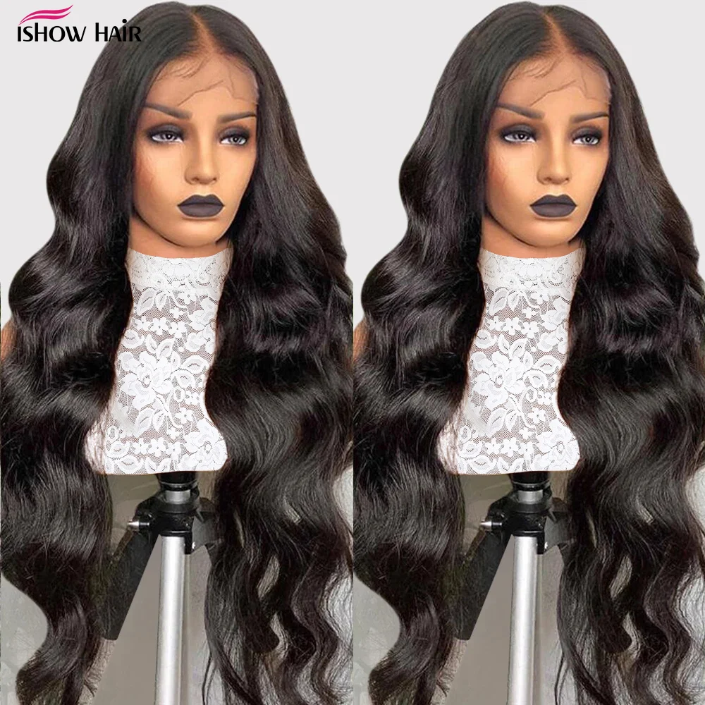 Парик Ishow из прозрачных человеческих волос, с предварительно выщипанными натуральными волосами, 13x4 передний парик на сетке, парик с застежкой 5x5
