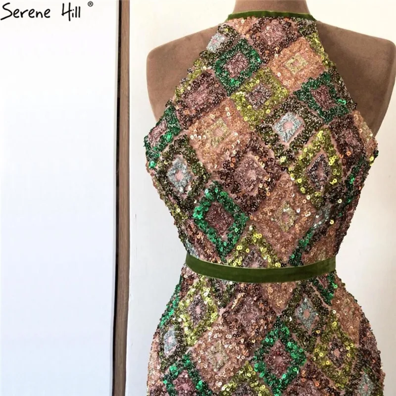 Дубай разноцветные с О-образным вырезом сексуальные блестящие вечерние платья 2021 с открытыми плечами блестками роскошное торжественное платье Serene Hill LA60996