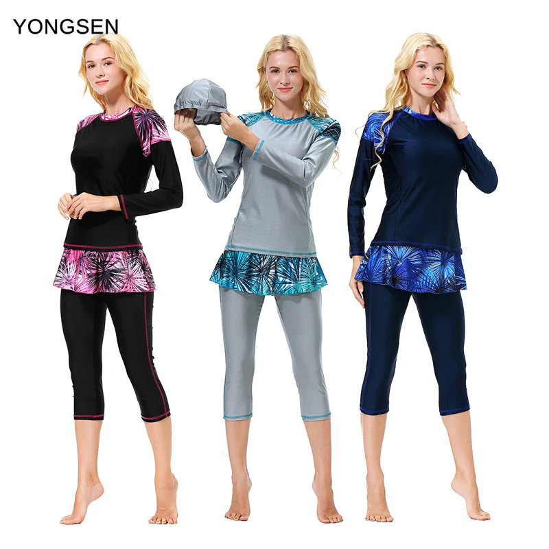 Купальник YONGSEN женский в мусульманском стиле, скромный сплошной купальник в стиле пэчворк, купальник с длинным рукавом, хиджаб