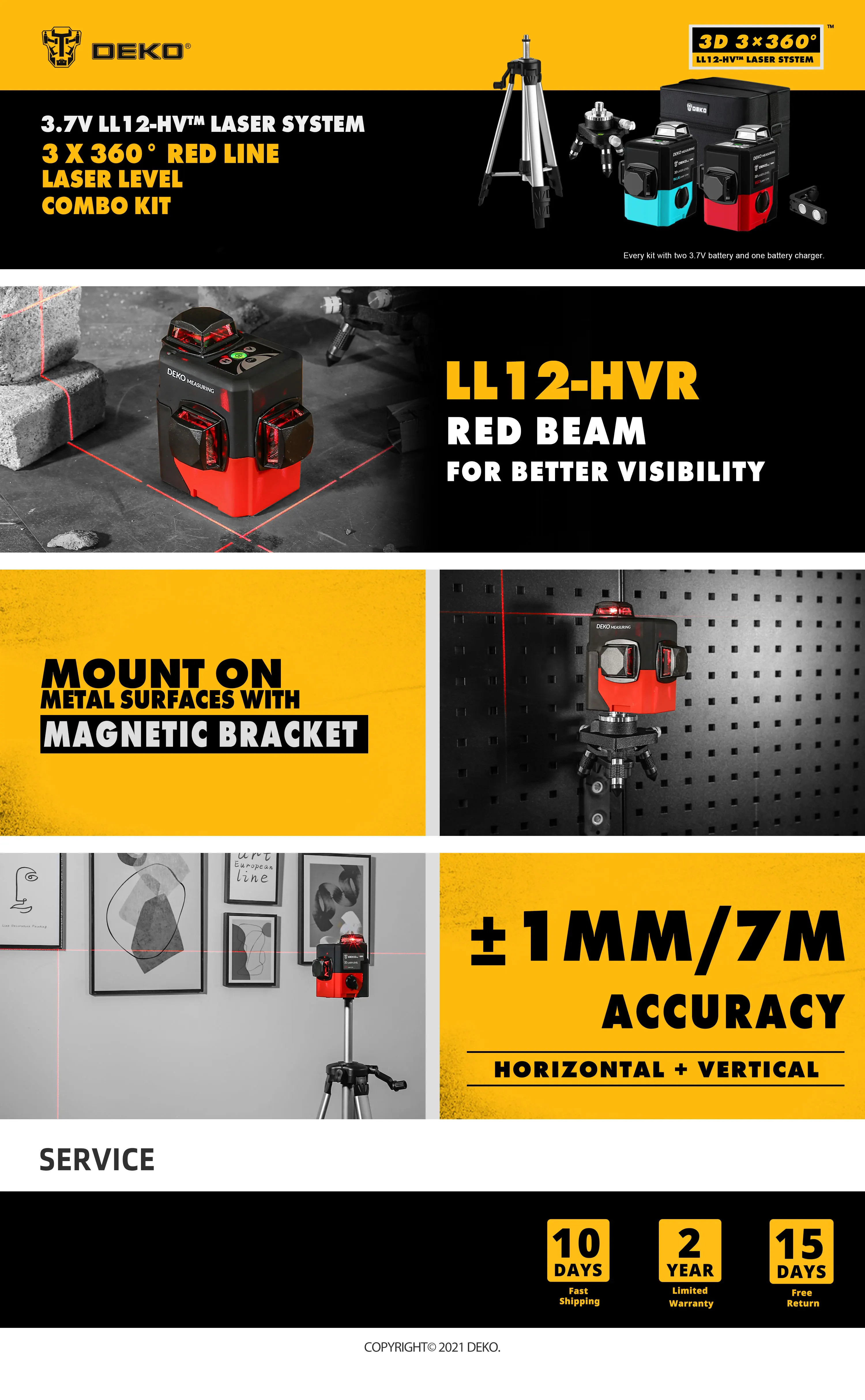 Лазерный уровень DEKO, LL12-HVR градусов, 12 линий, красный лазер
