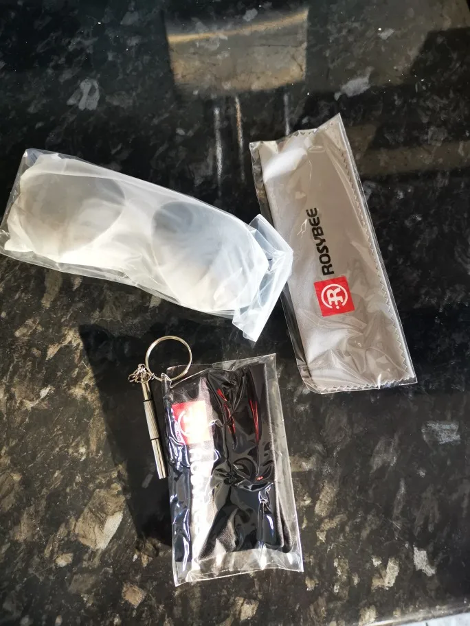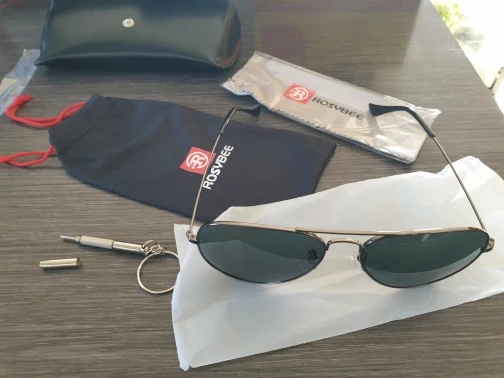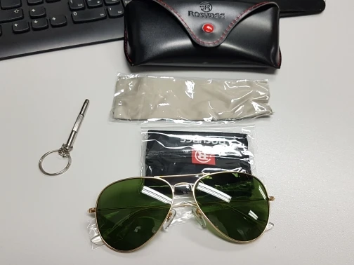 Хорошее качество изготовления и аксессуары с футляром для переноски, тряпка для чистки и небольшая отвертка для винтов очки сделаны действительно хорошо и с кольцом для ключей, прибыл через около 20 дней, я уверен, хорошее соотношение цены и качества.