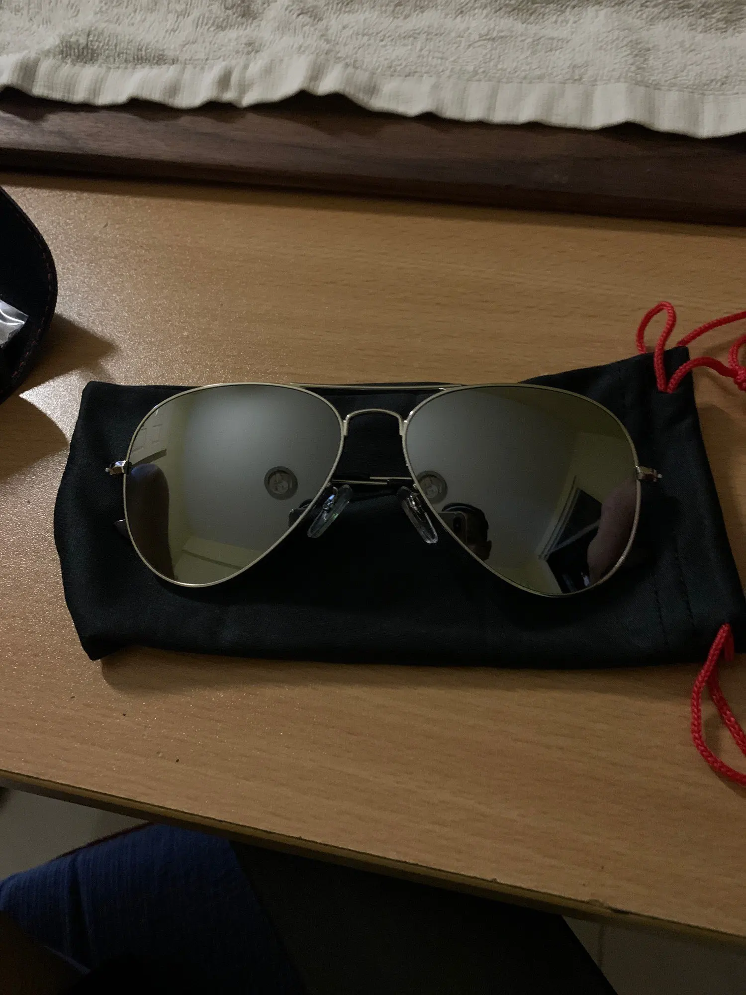 отличные очки. пришли с кожаным чехлом, двумя тряпочками для протирания и отверткой для смены силиконовых прокладок. стеклянные, что очень порадовало. брала silver black, отлично защищают глаза от солнца, шарниры прочные, тугие, не разболтаные