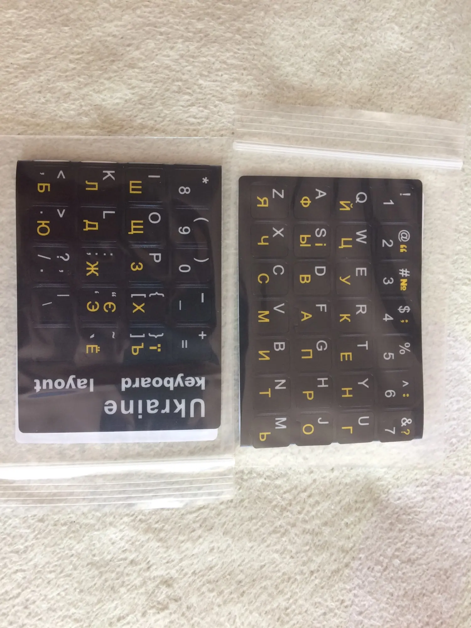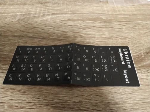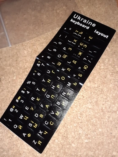 Заказала 7.03, получила 23.03 (Минск, Беларусь). Товар бросили в почтовый ящик в конверте с прослойкой из пузырчатой пленки (очень удобно, не пришлось идти на почту). Товар в отличном состоянии, не поврежден. Долго выбирала наклейки с кирилицей, остановилась на украинском языке из-за более аккуратного (по сравнению с русским) шрифта. Полностью устривает контраст белых и желтых букв. Возможно наклейки чересчур глянцевые (бликуют), но конфигурация букв для меня имеет большее значение. В целом покупкой довольна, с продавцом не общалась. Продавца рекомендую.