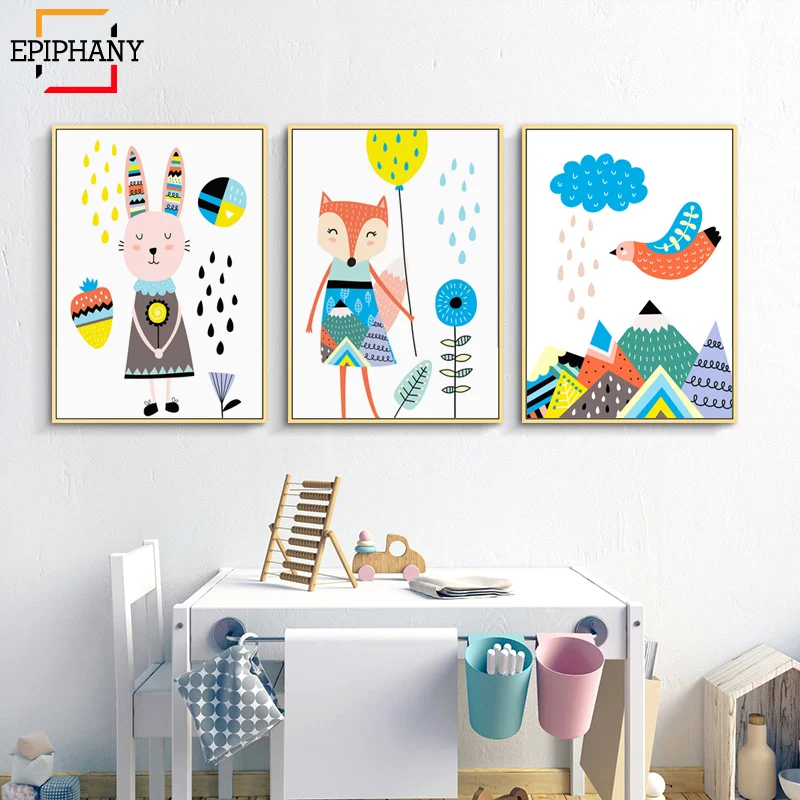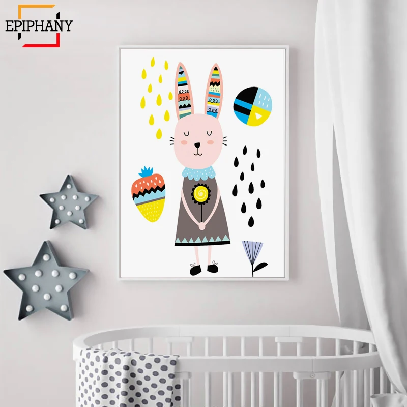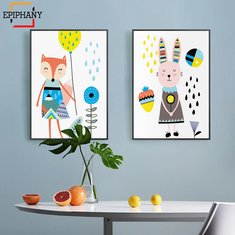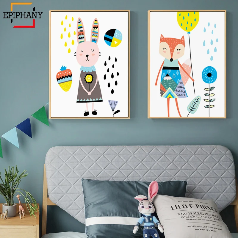Картины на стену для детской комнаты с изображением кролика лисы леса животных на холсте декор для детской комнаты скандинавские постеры и принты