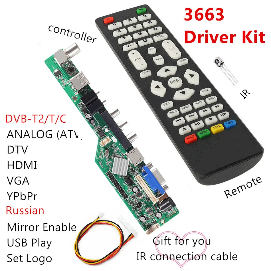 Универсальный ТВ-контроллер 3663, пульт управления ЖК-телевизором с поддержкой сигнала DVB-CDVB-T2DVB-T и русского языка, USB порт, микросхема LUA63A82
