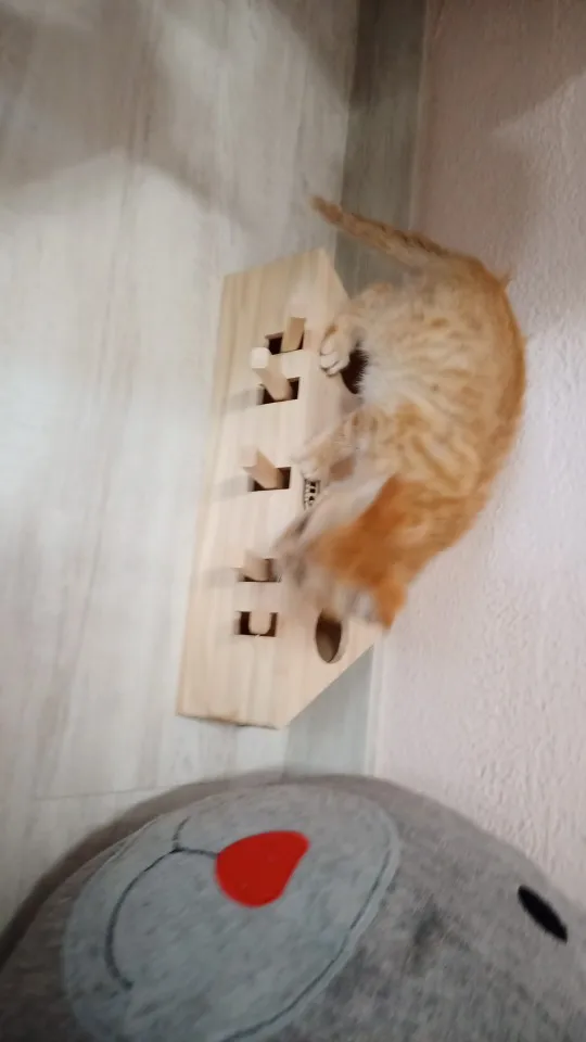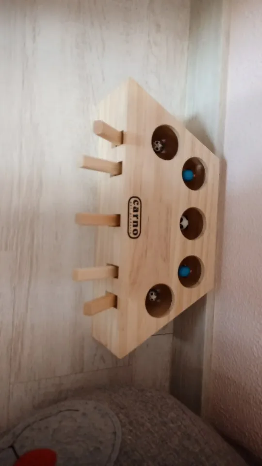 Well made wooden toy. I have to train my 4 months old kitten how to play with it.